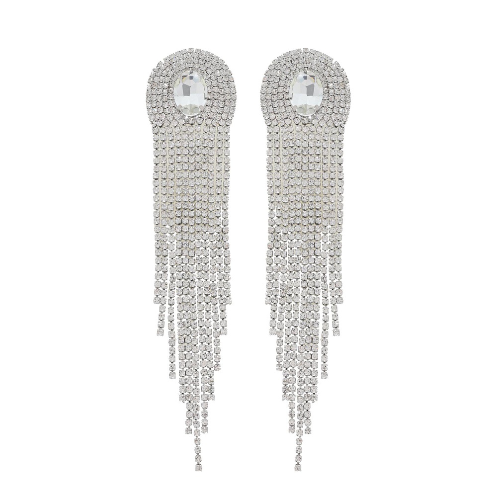 Crystal Rhinestone Arch Tassel Long Drop Earrings