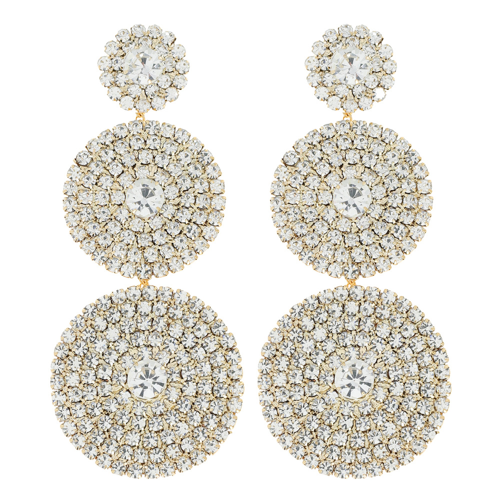 STATEMENT 3 TIER CRYSTAL PAVE TRIPLE DISC DROP EARRINGS