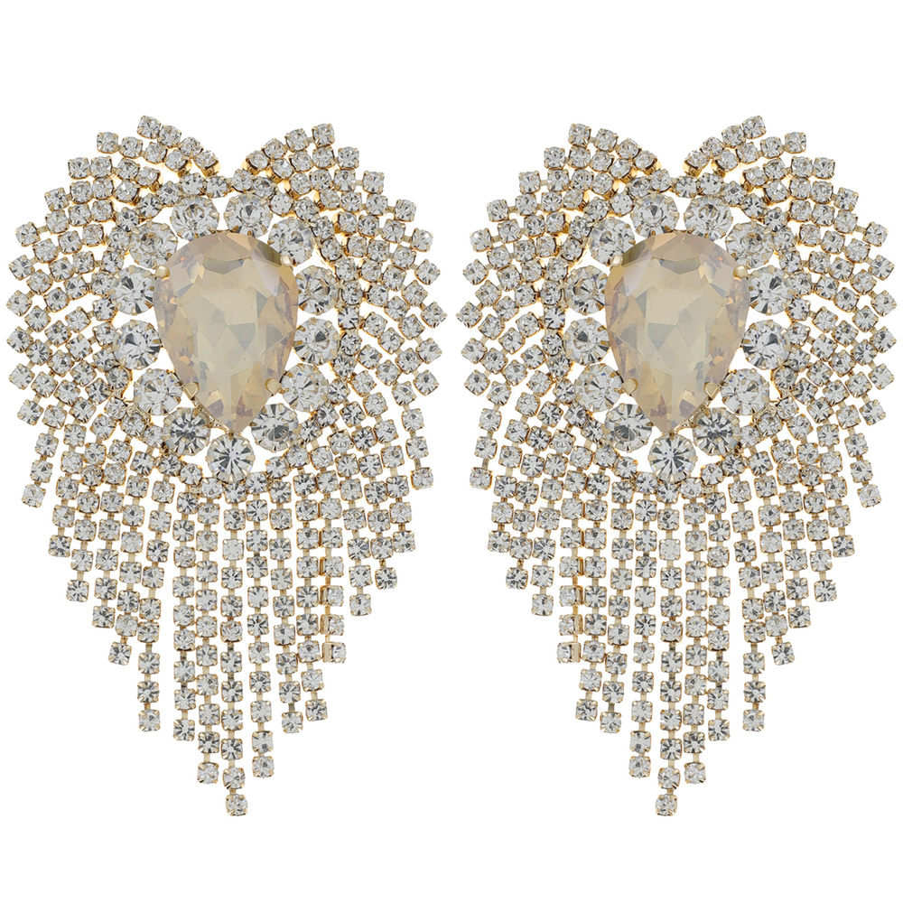 STATEMENT CRYSTAL TEARDROP HEART SHAPED TASSEL DROP EARRINGS - EVENING GLAM JEWELRY