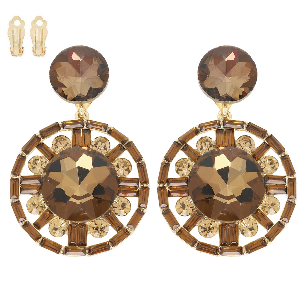 2-TIER BAGUETTE CUT CRYSTAL GEMSTONE CIRCULAR CLIP-ON DROP EARRINGS