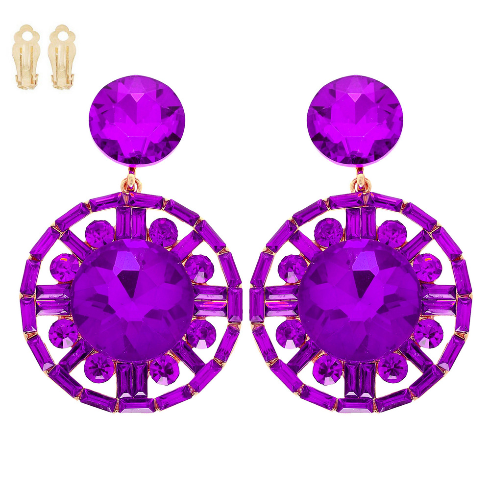 Glam Circular Gemstone Clip-on Drop Earrings
