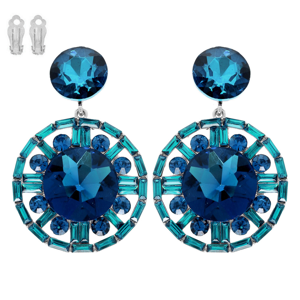 2-TIER BAGUETTE CUT CRYSTAL GEMSTONE CIRCULAR CLIP-ON DROP EARRINGS
