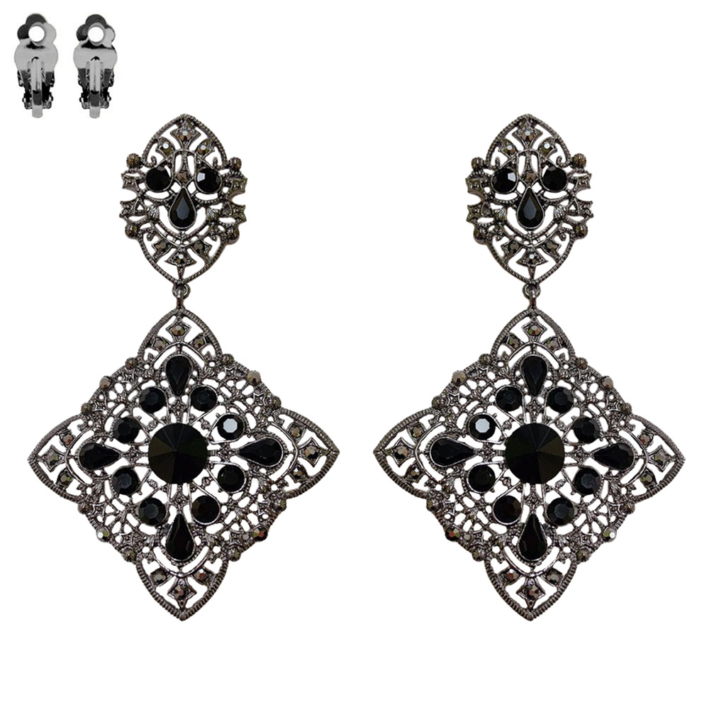2-TIER BAROQUE CRYSTAL RHINESTONE FILIGREE CLIP-ON EARRINGS