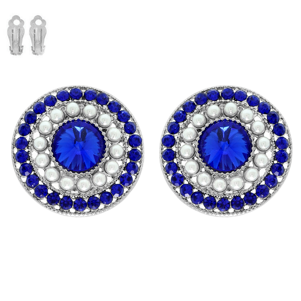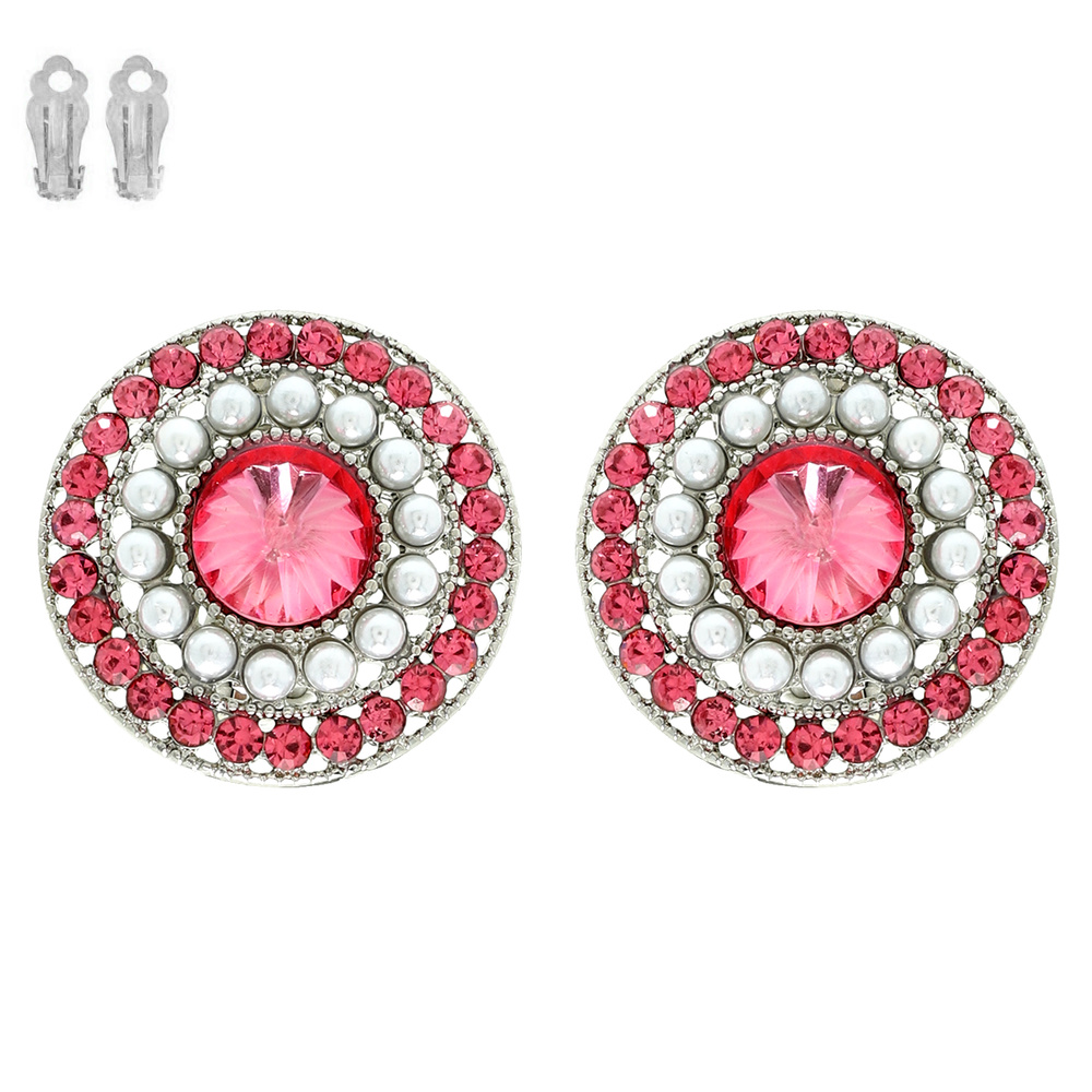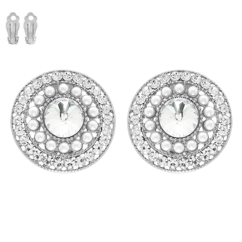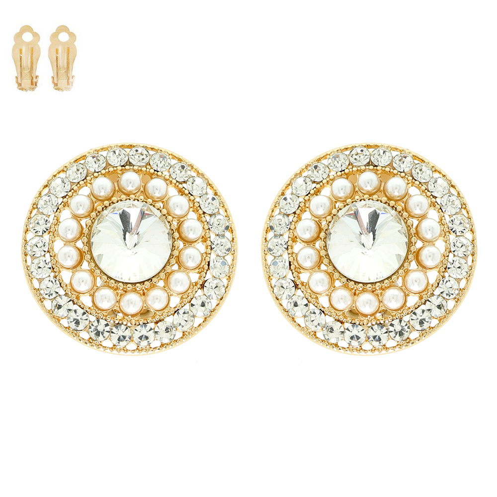 VINTAGE STYLE CRYSTAL RHINESTONE PEARL ROUND CUT PAVE CLIP-ON EARRINGS