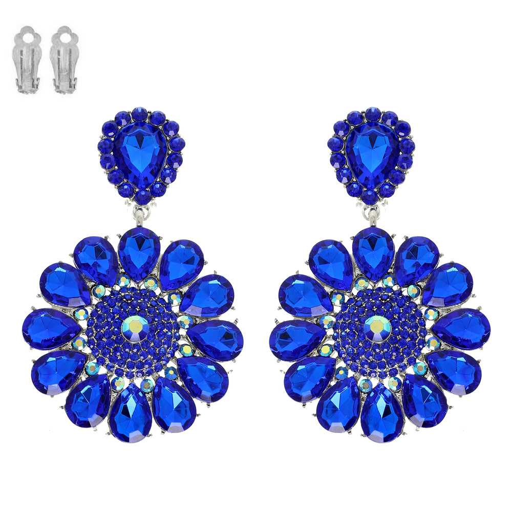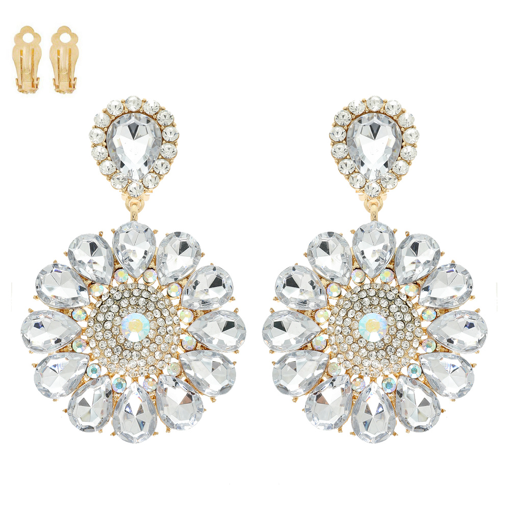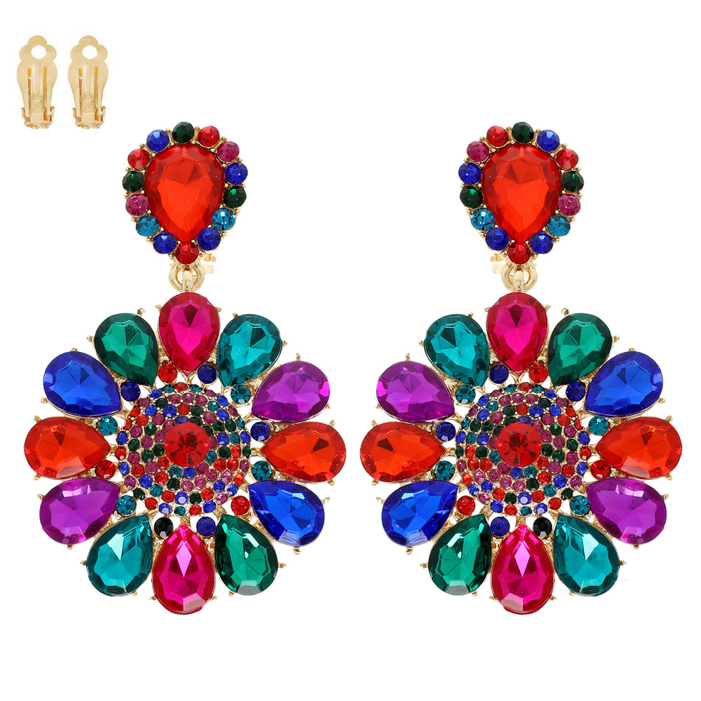 FLORAL TEARDROP MULTI-CUT CRYSTAL RHINESTONE CLUSTER CLIP-ON EARRINGS