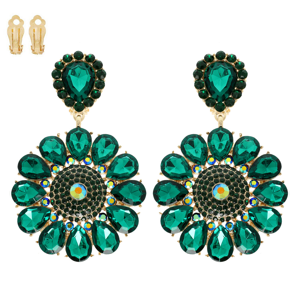 Floral Teardrop Cluster Clip-on Dangle Earrings