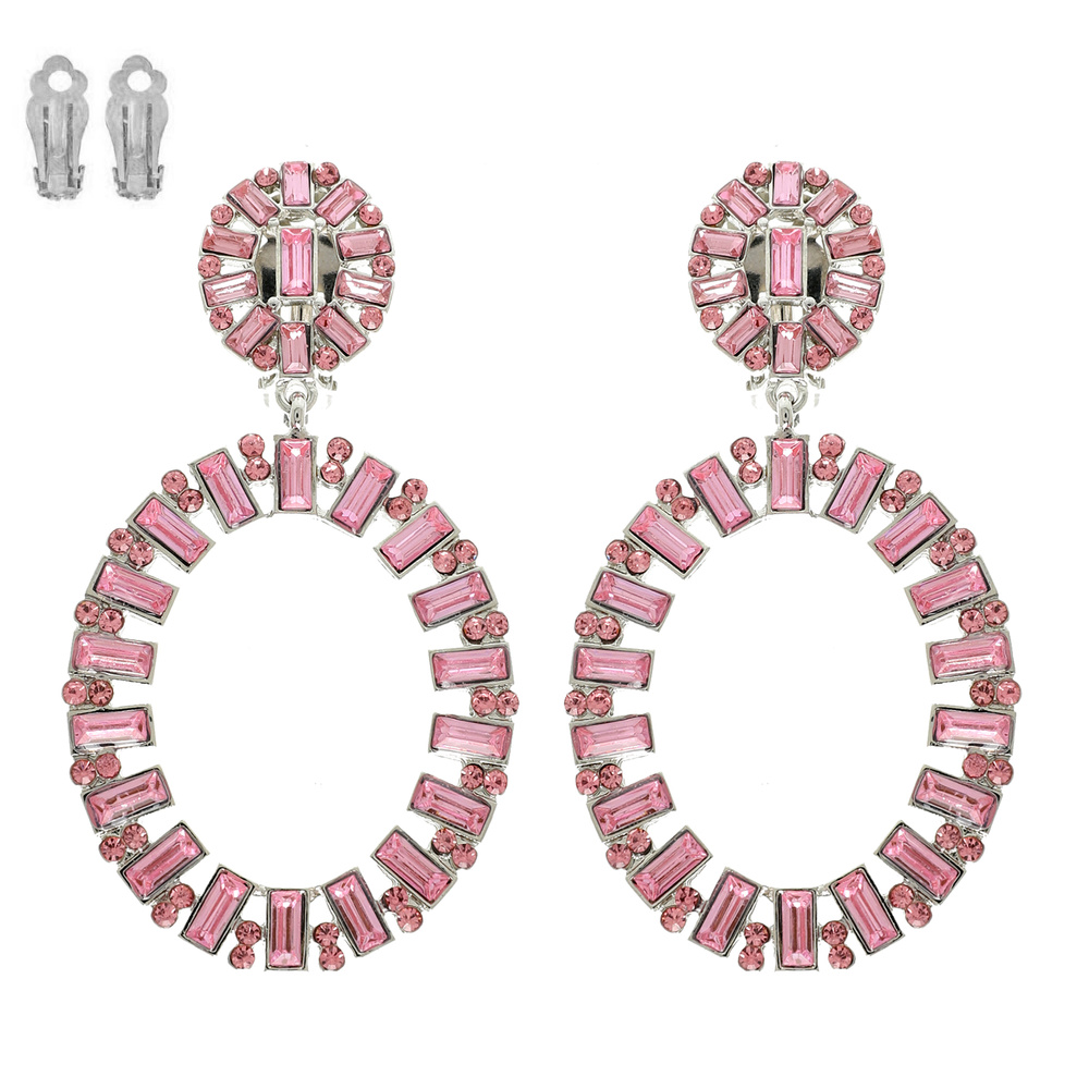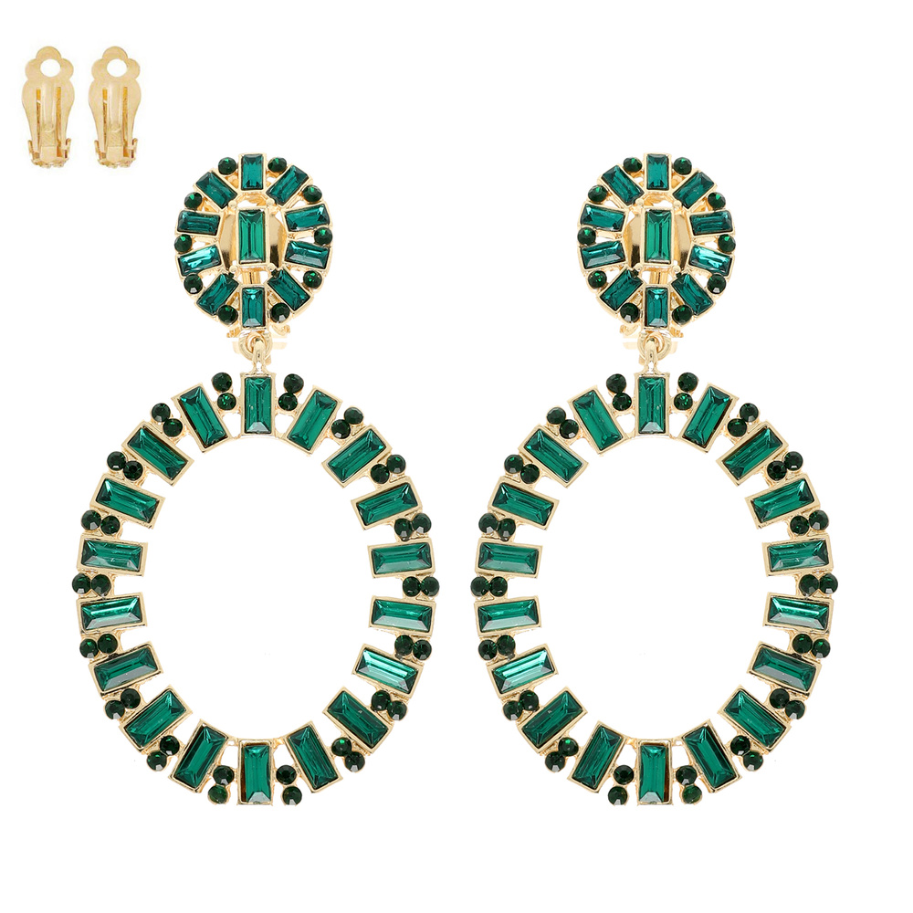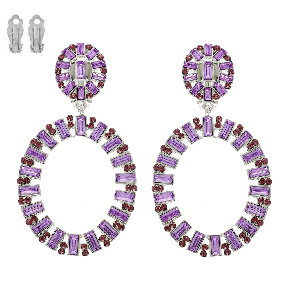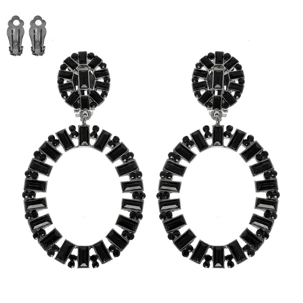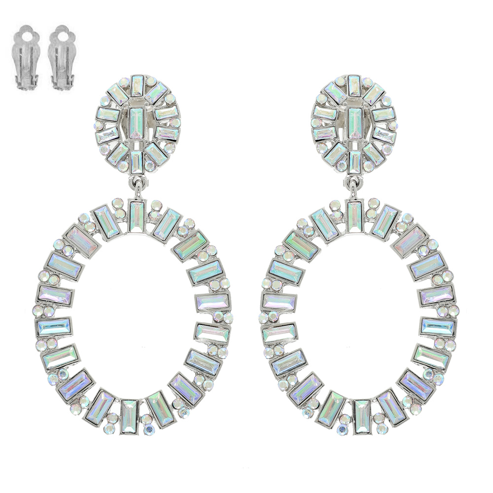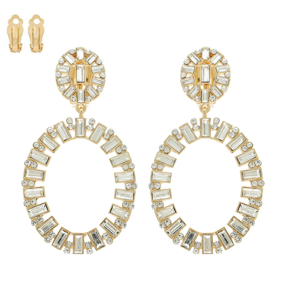 TWO-TIER CIRCLE BAGUETTE-CUT CRYSTAL CLIP-ON EARRINGS
