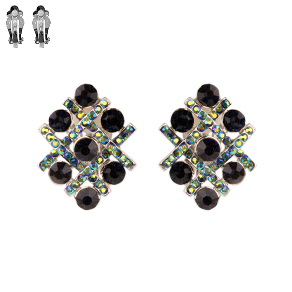 Criss Cross Stone Encrusted Lines Metal Clip Earrings