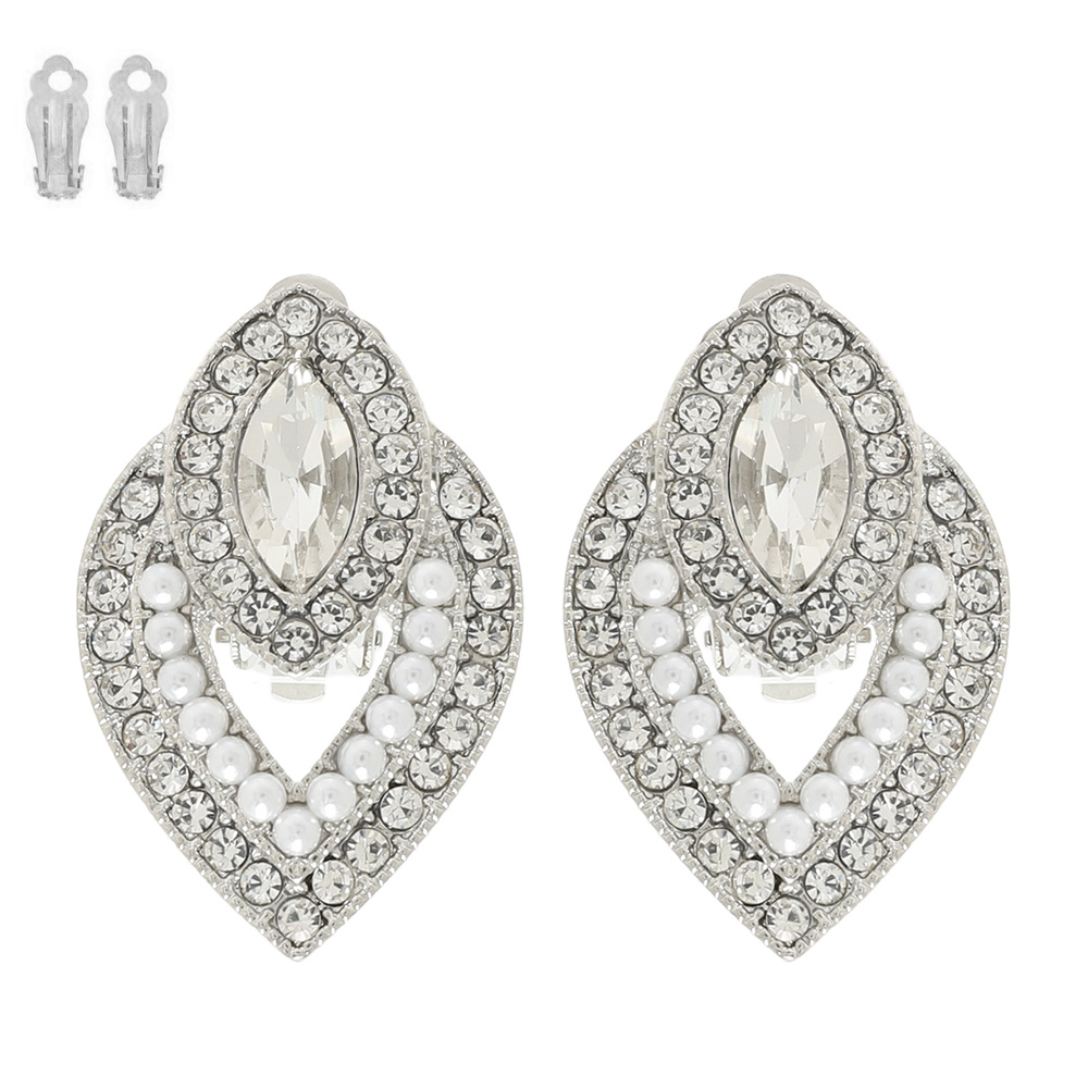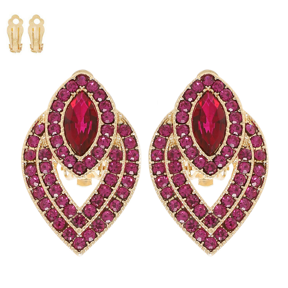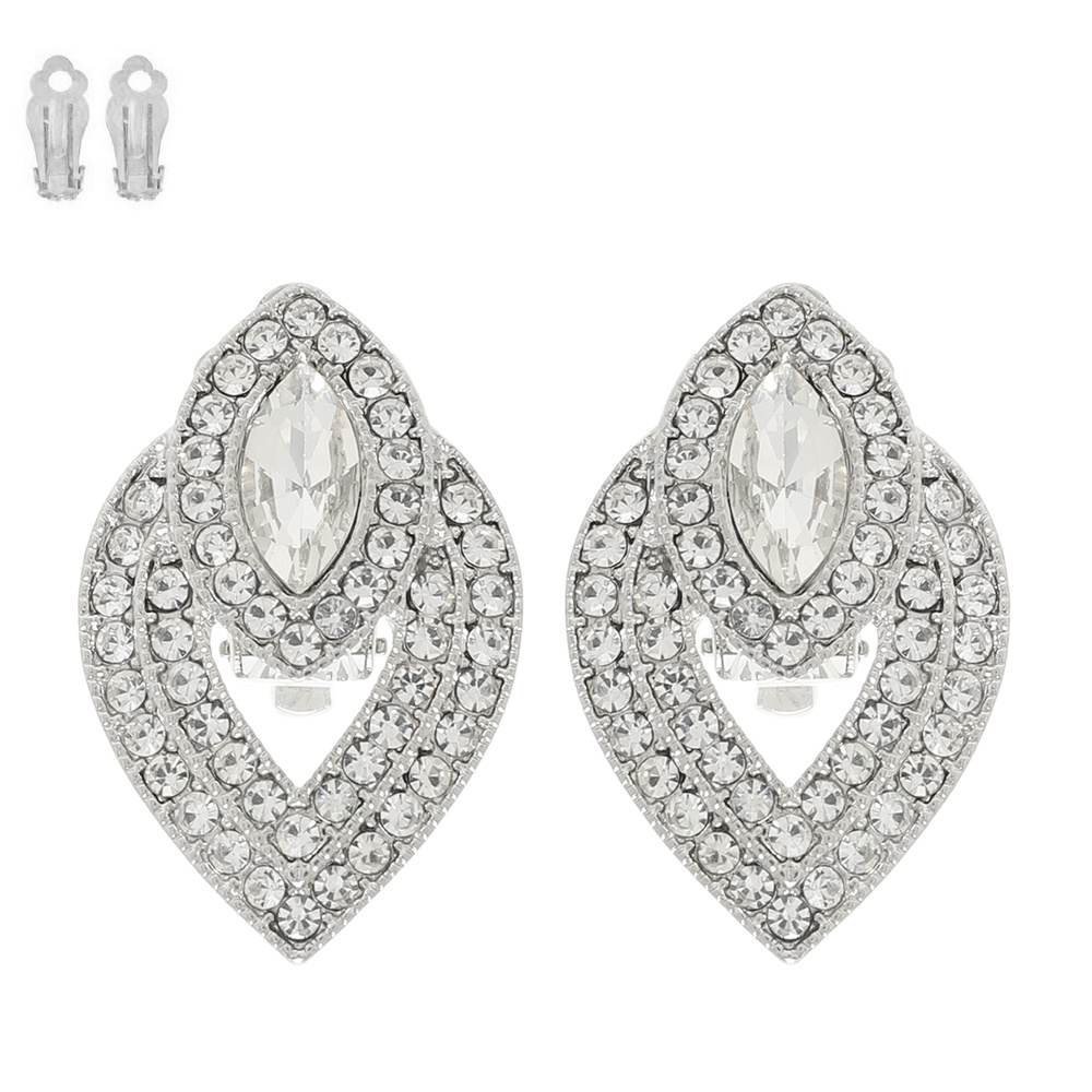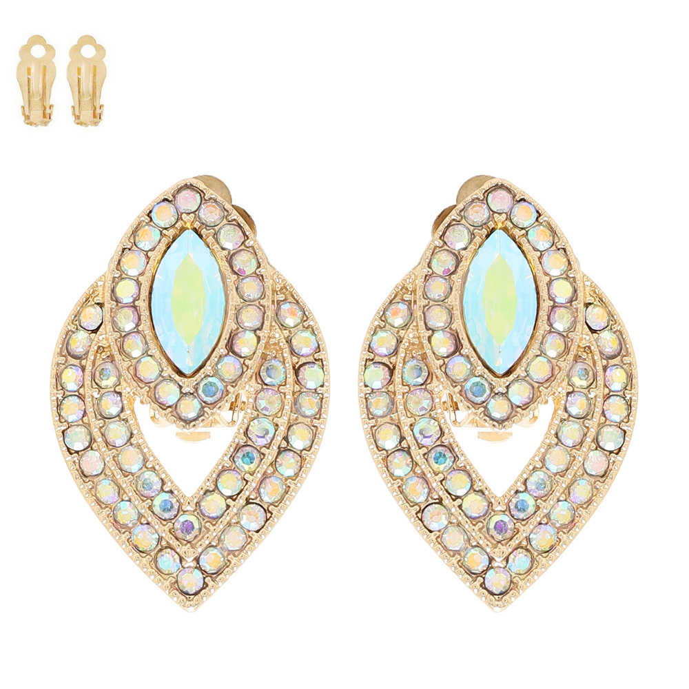 Marquise Gem With Stones Metal Clip Earrings Ecq65bjt