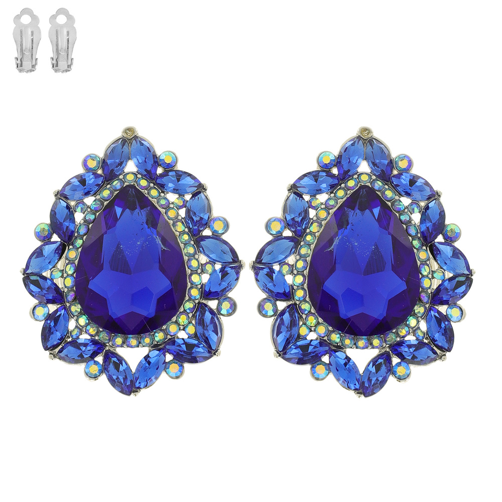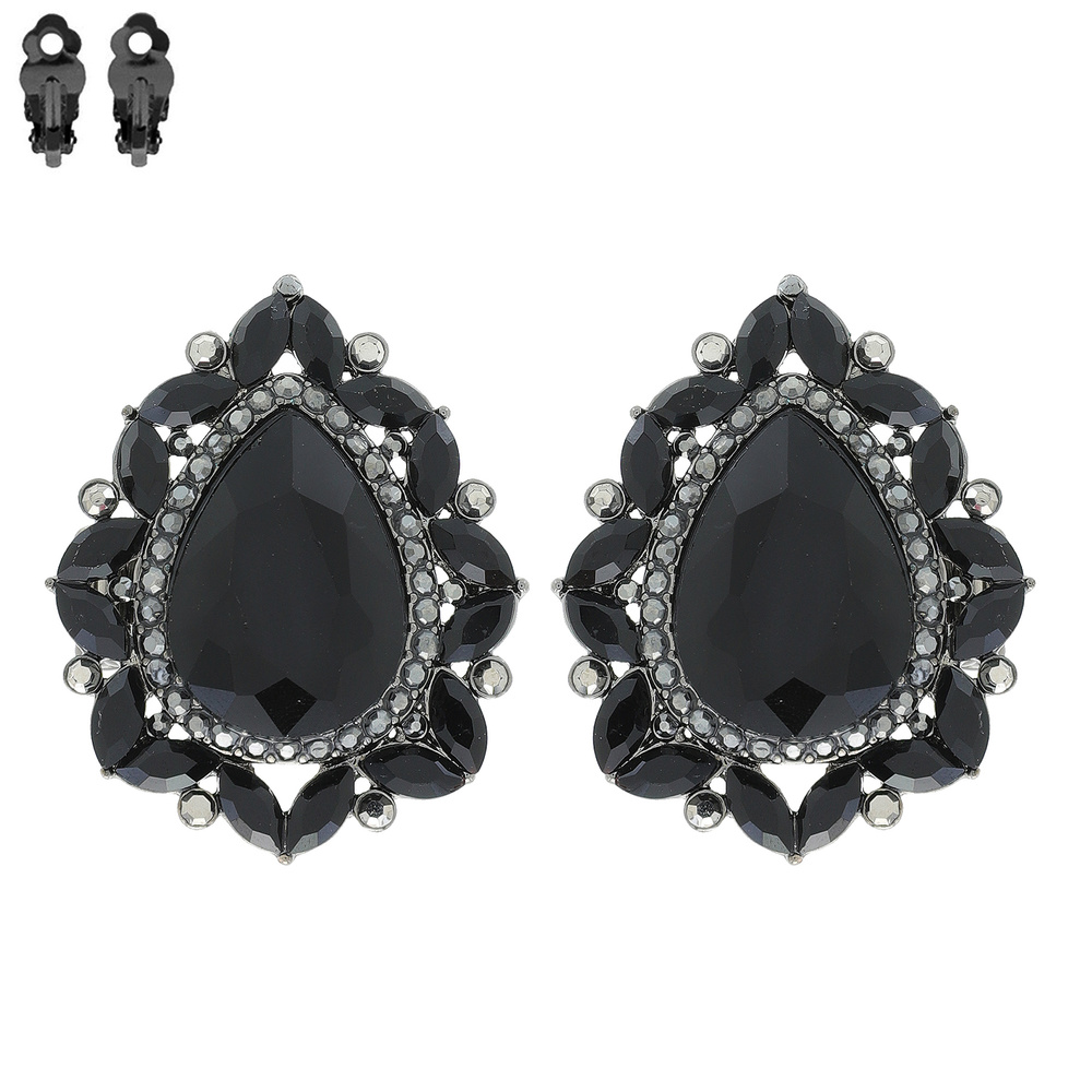 TEARDROP GEM WITH RHINESTONE CLIP EARRINGS