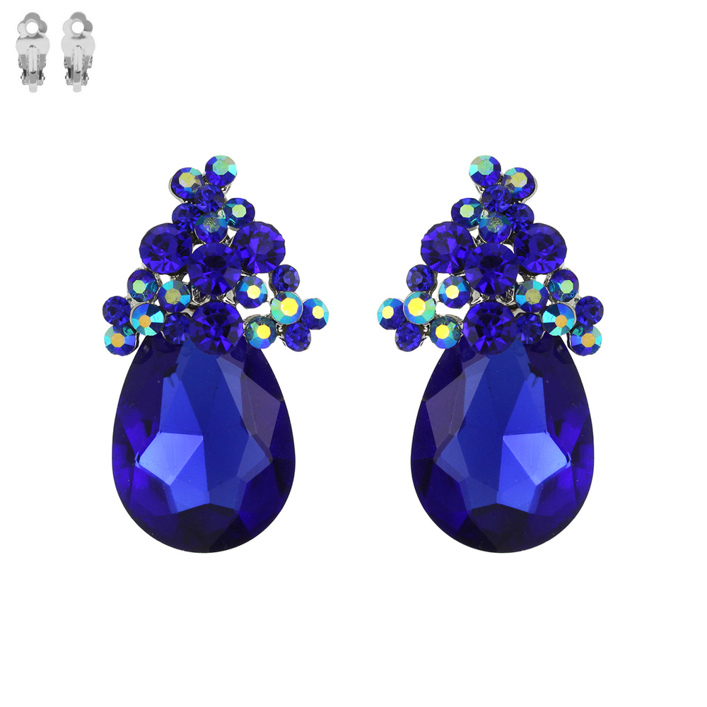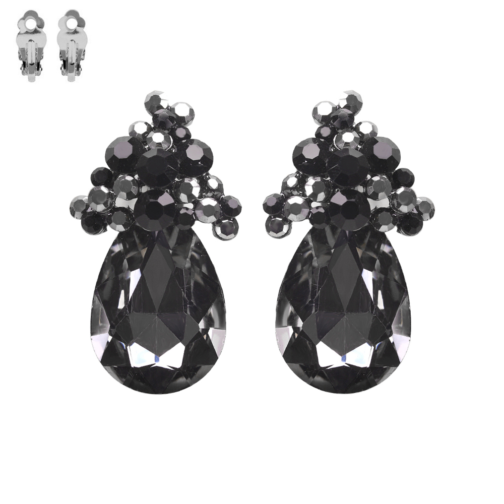 TEARDROP CLUSTER STONE CLIP EARRING