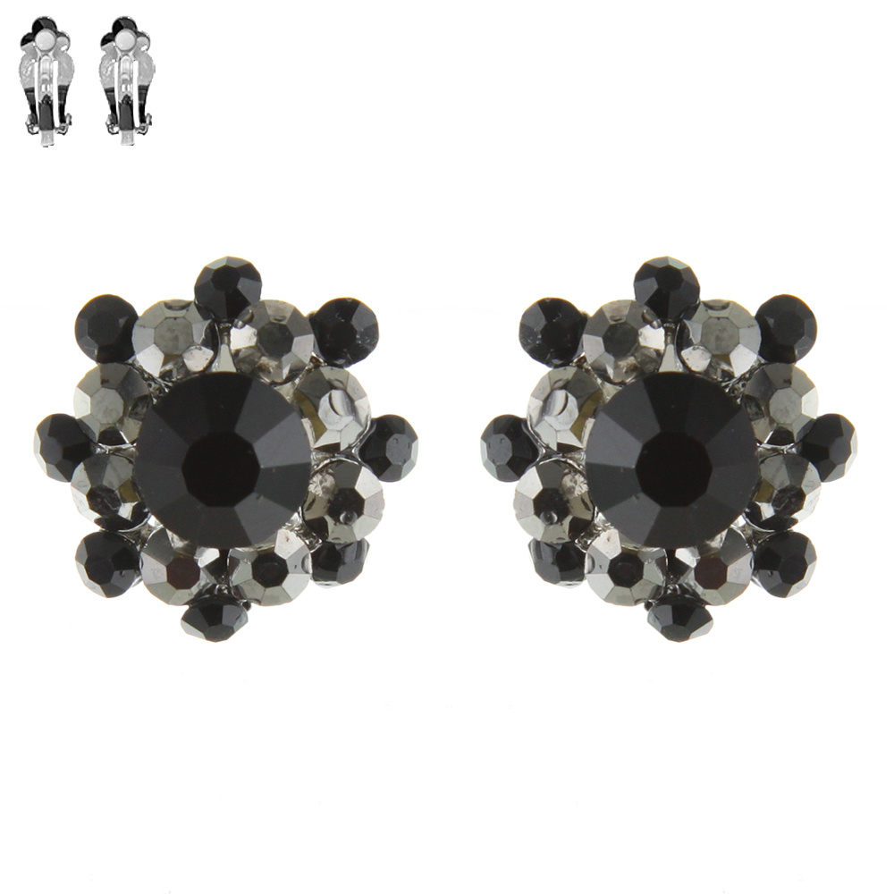 Stone Burst Edge With Center Round Gem Metal Clip Stud Earrings Erk0099bk