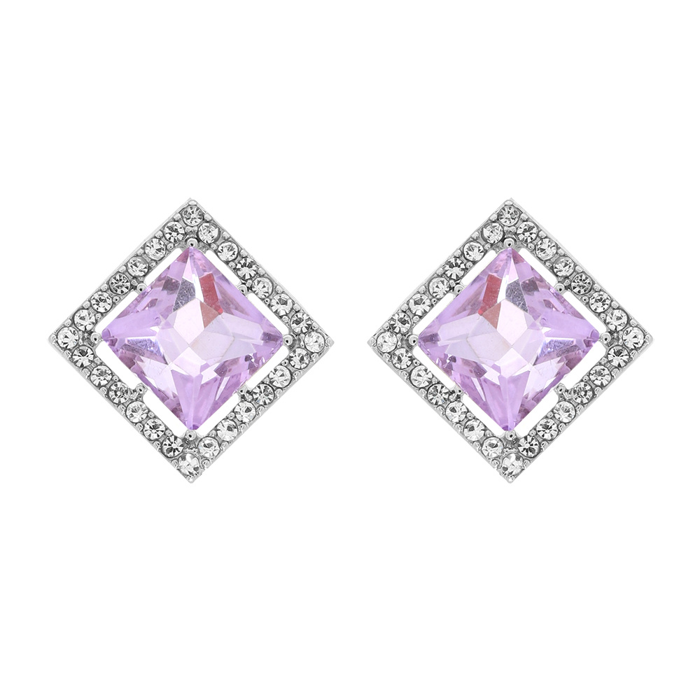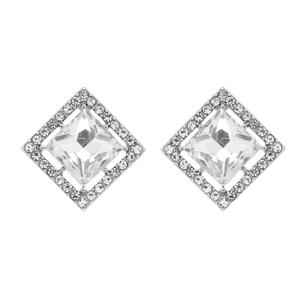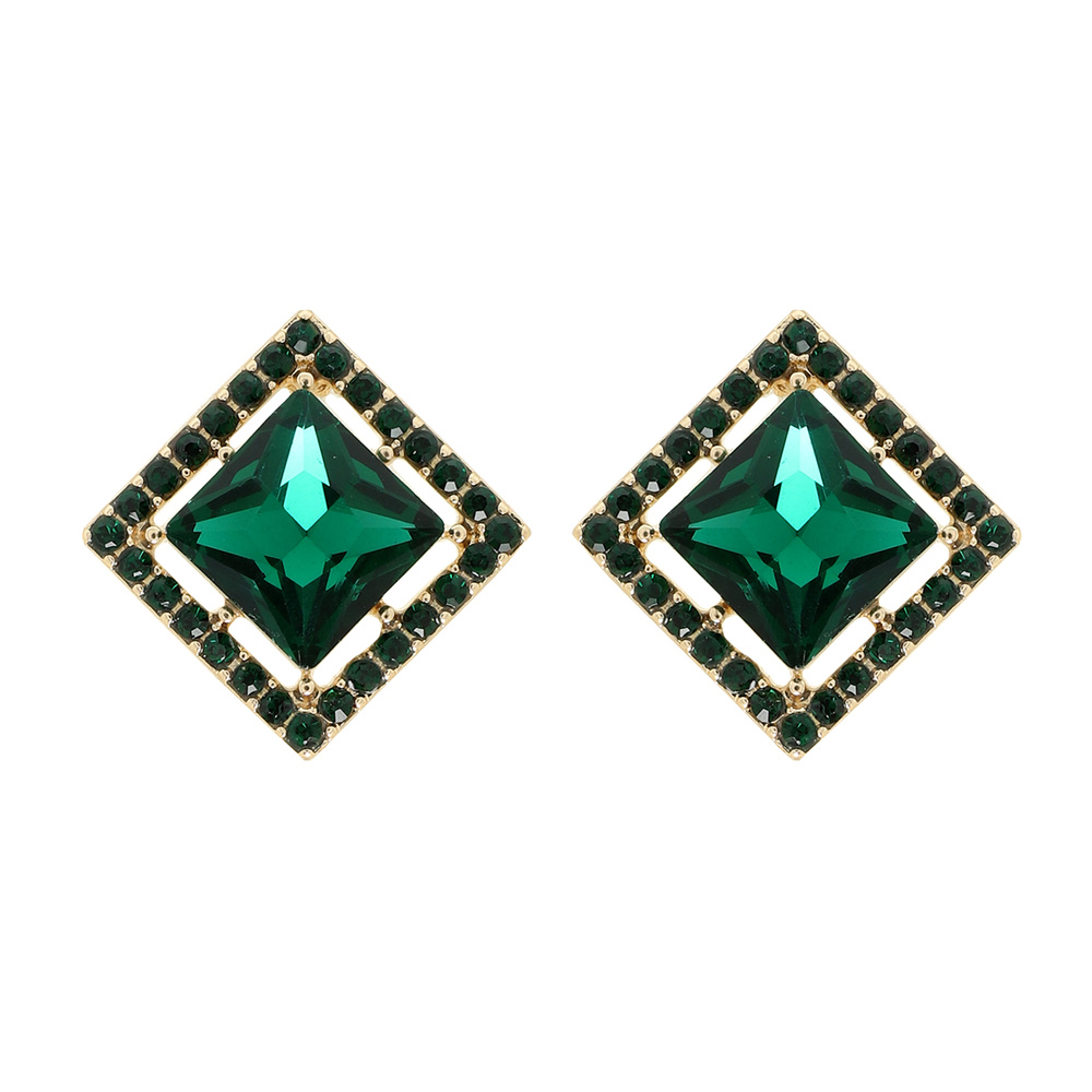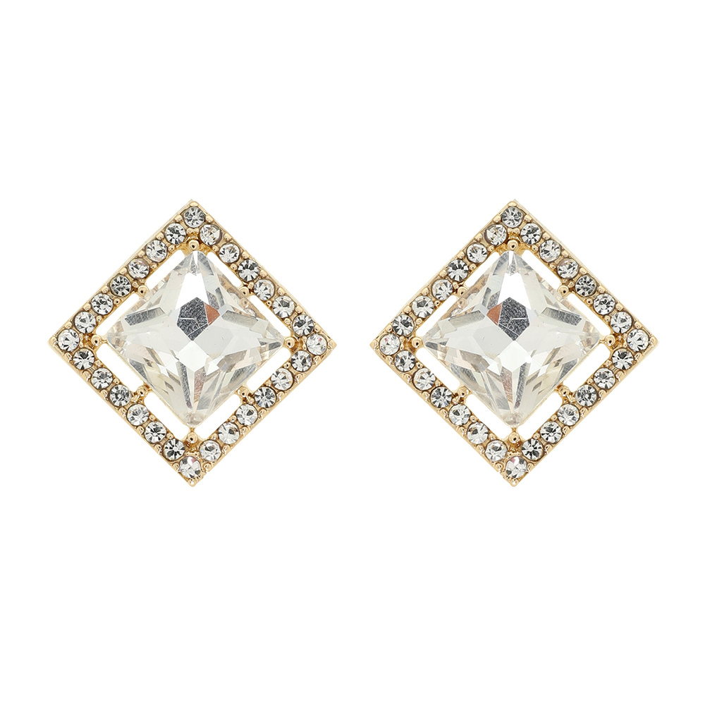 SQUARE CUT STONE RHINESTONE PAVE OPEN SQUARE POST STUD EARRINGS