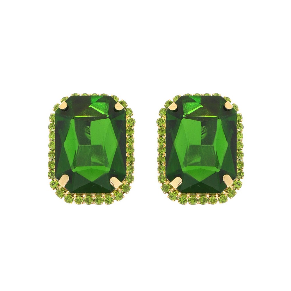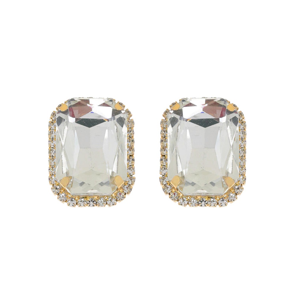 CRYSTAL RHINESTONE OCTAGON CUT HALO DROP EARRINGS
