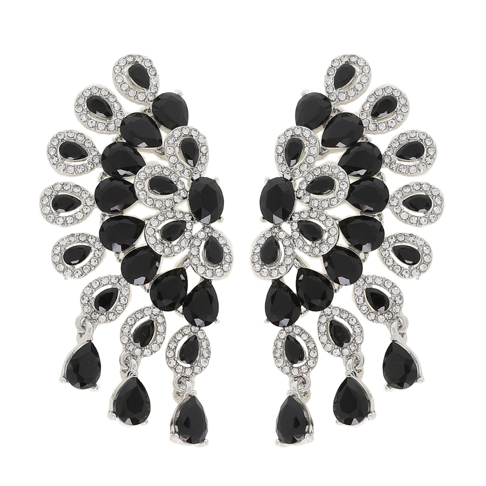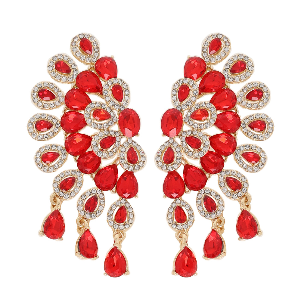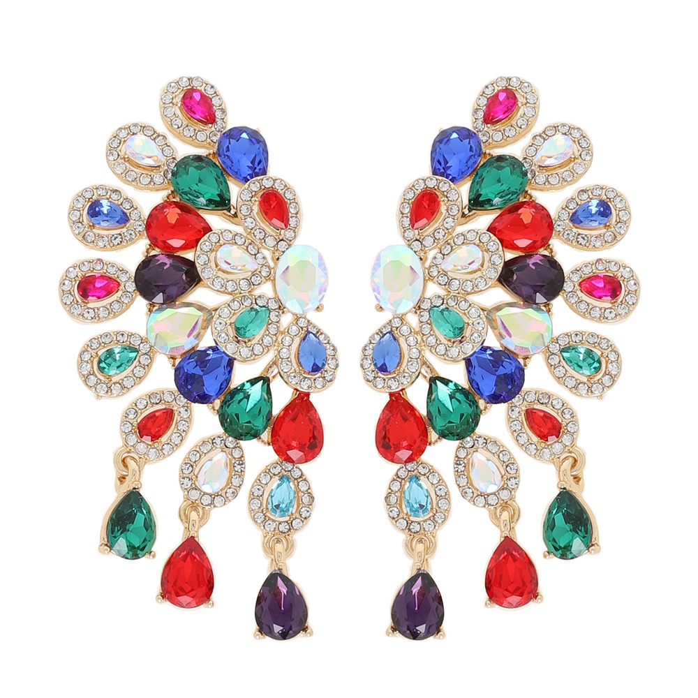 Crystal Gemstone Teardrop Chandelier Fan Earrings
