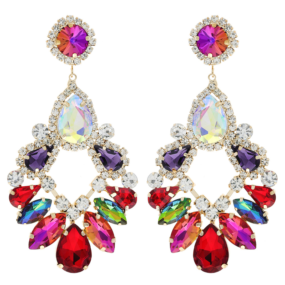 Glass Stone Crystal Rhinestone Evening Drop Earrings