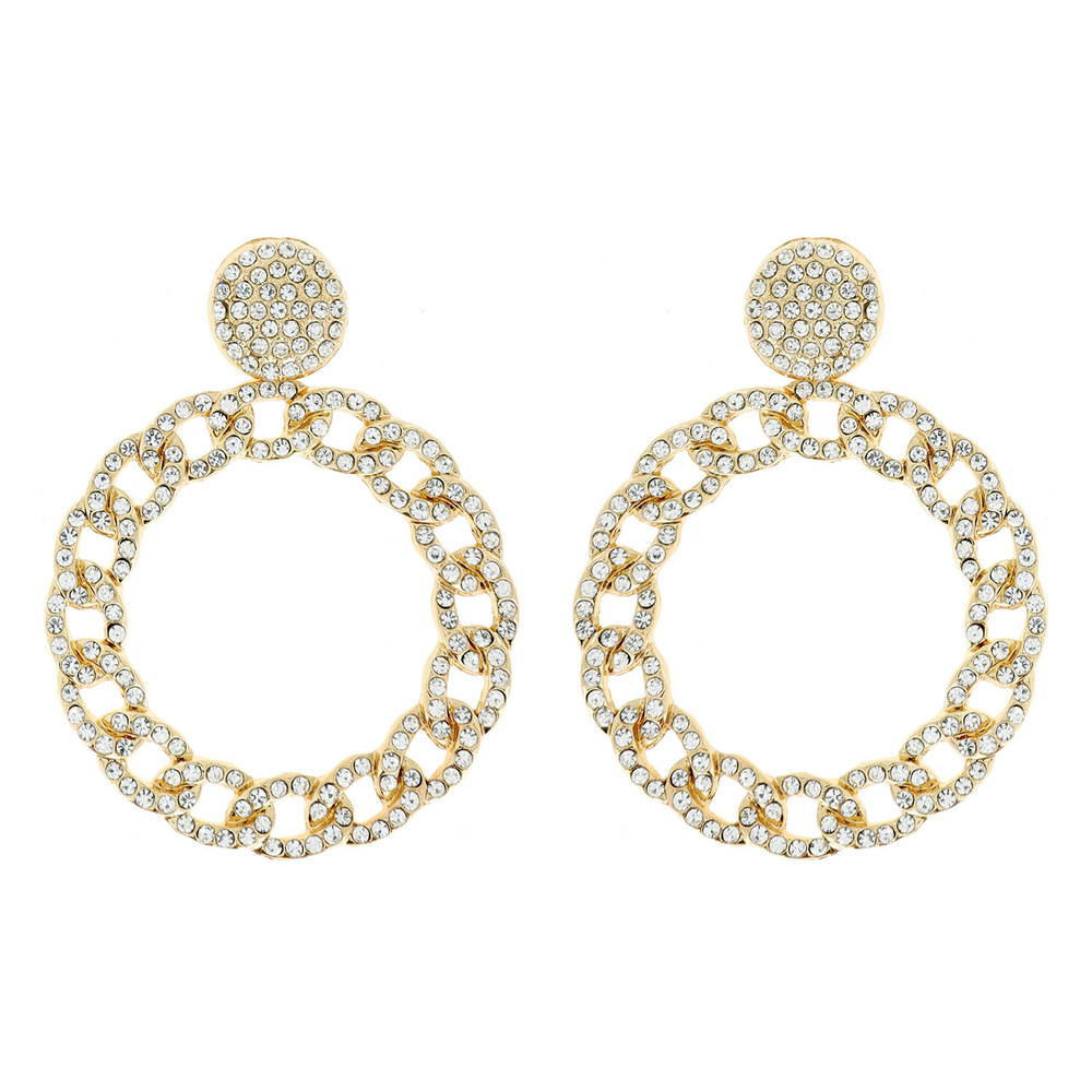 Crystal Rhinestone Chain Link Circle Hoop Earrings