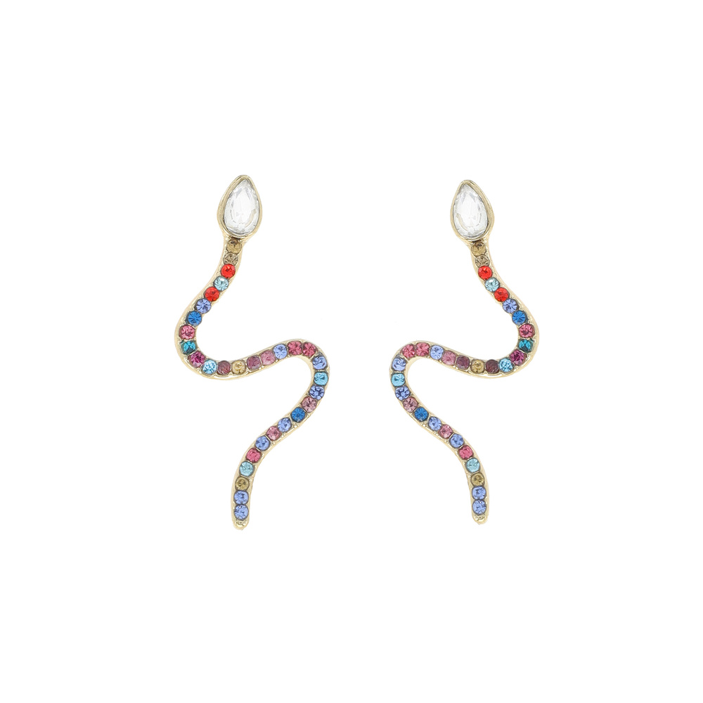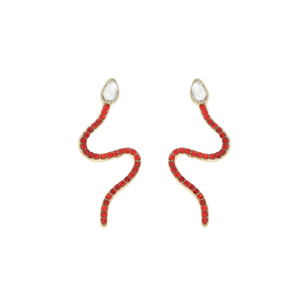 Crystal Rhinestone Thin Wavy Snake Earrings
