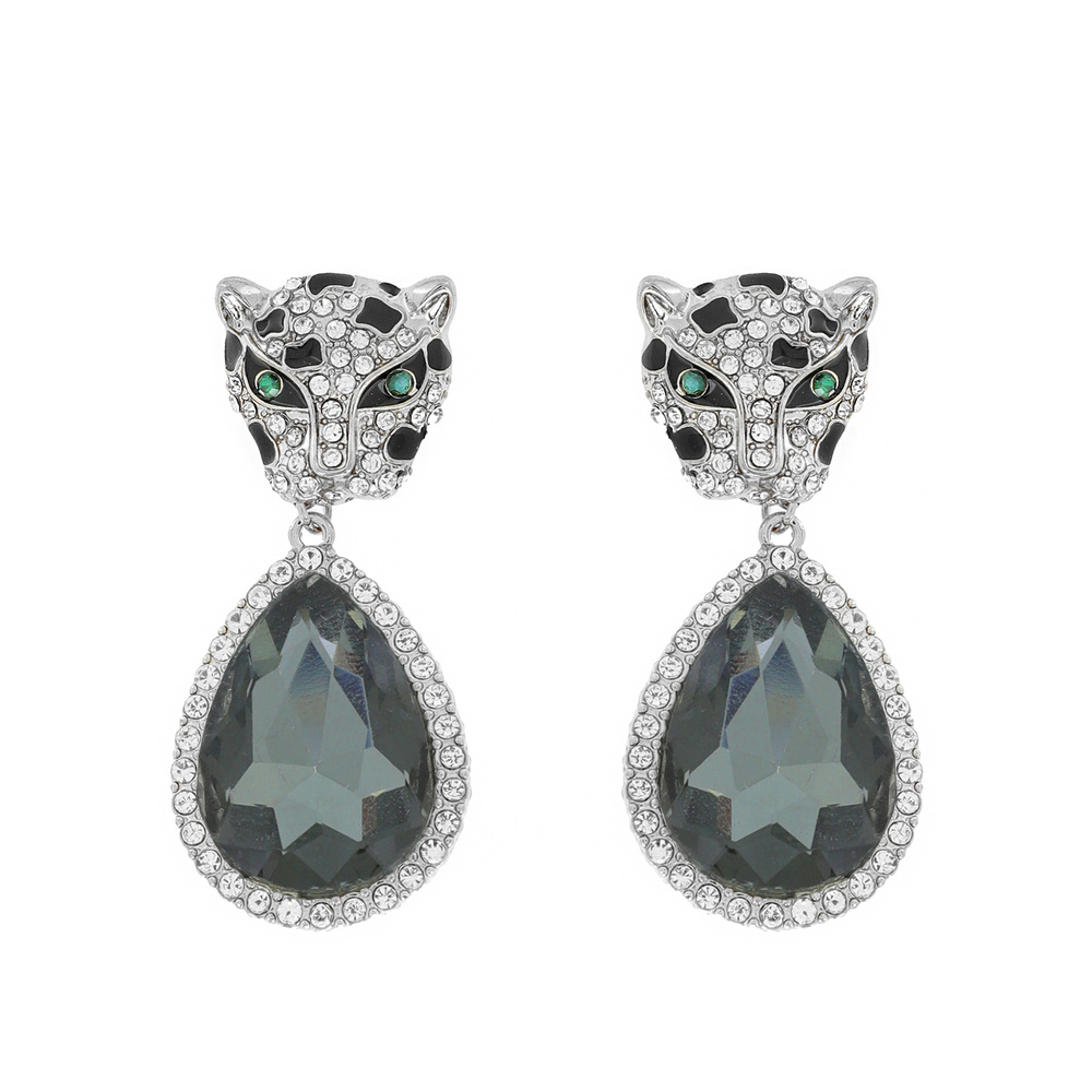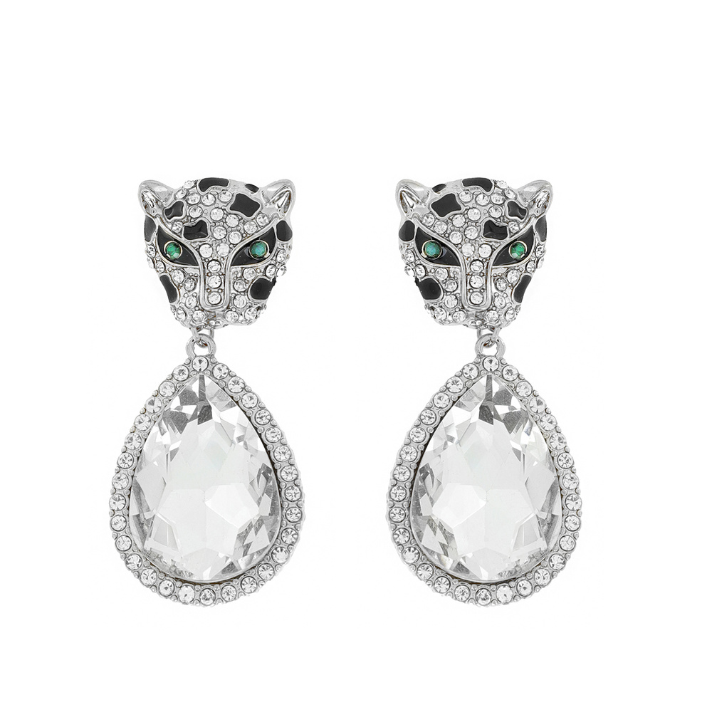 PUMA PANTHER WITH TEARDROP GEM DANGLE EARRINGS