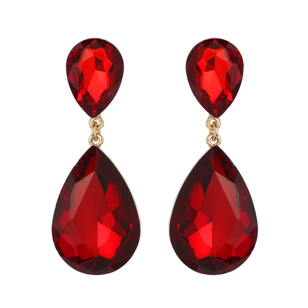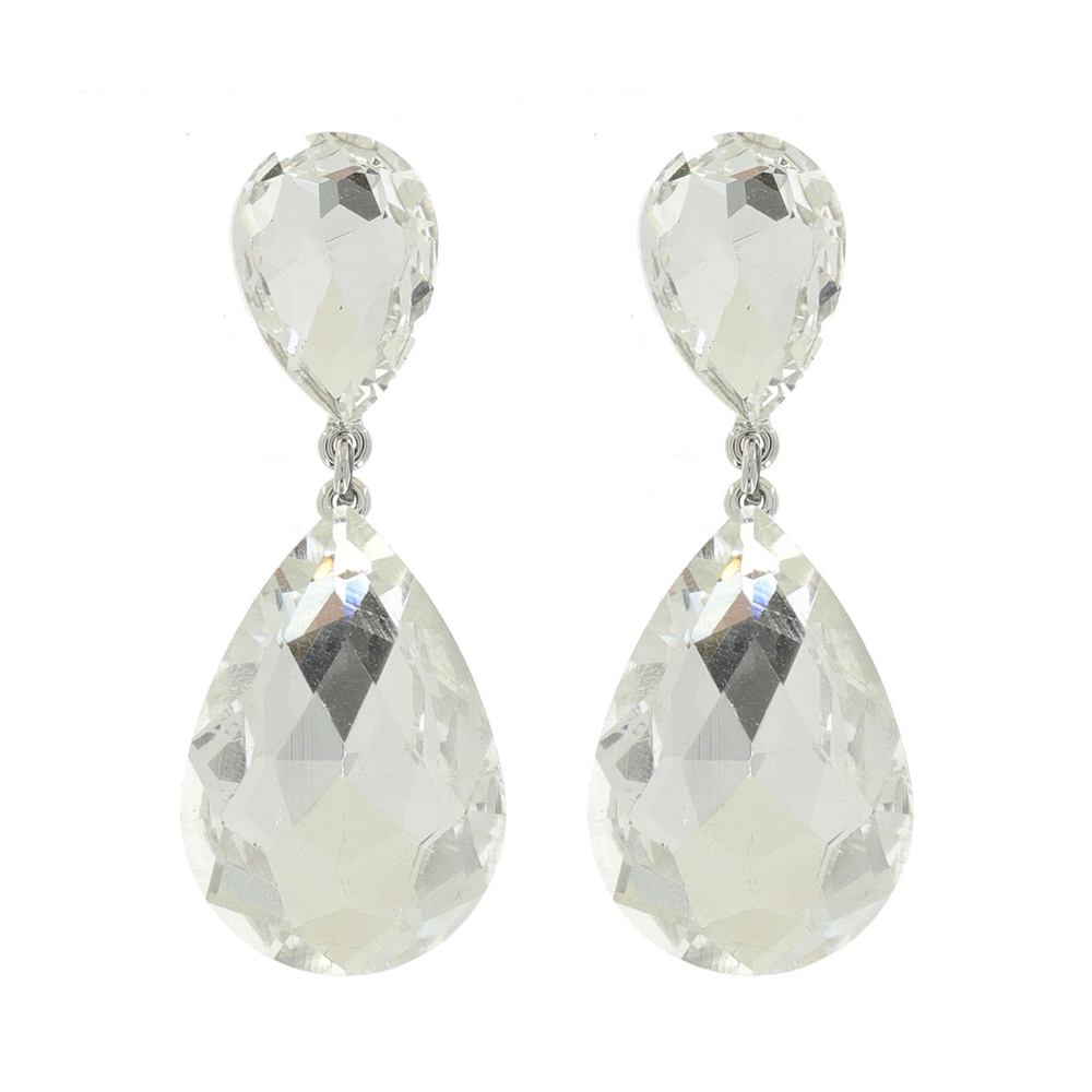 TWO-TIER TEARDROP CUT CRYSTAL POST DANGLE EARRINGS