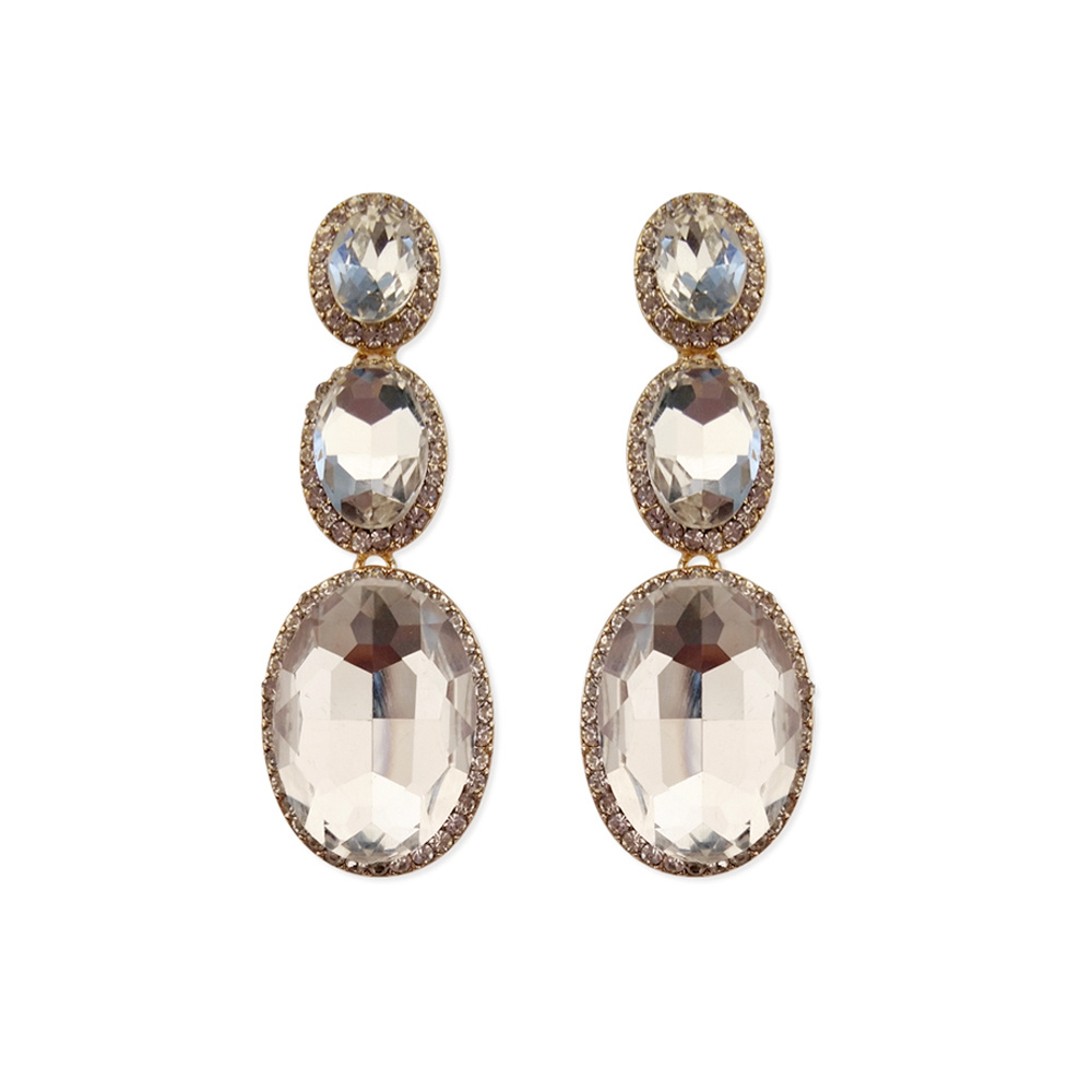 Dangly 3 Drop Oval Gem Earrings Eq247gcl