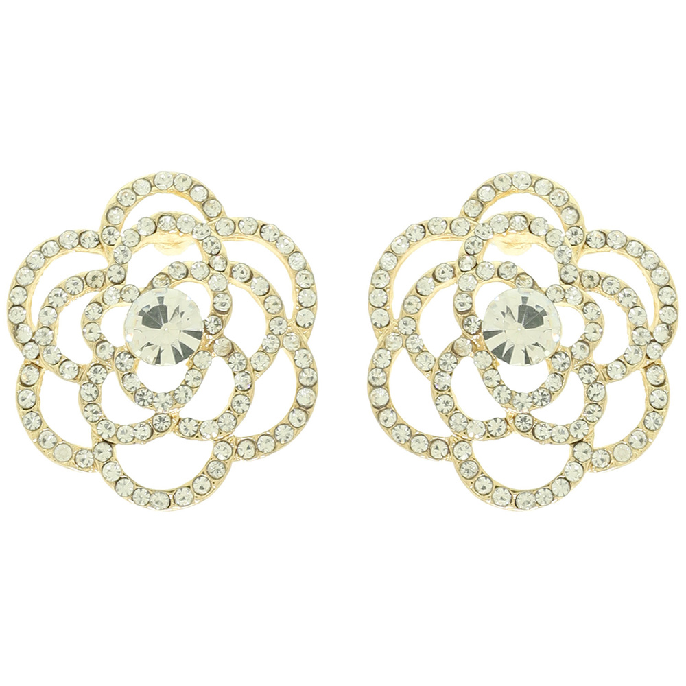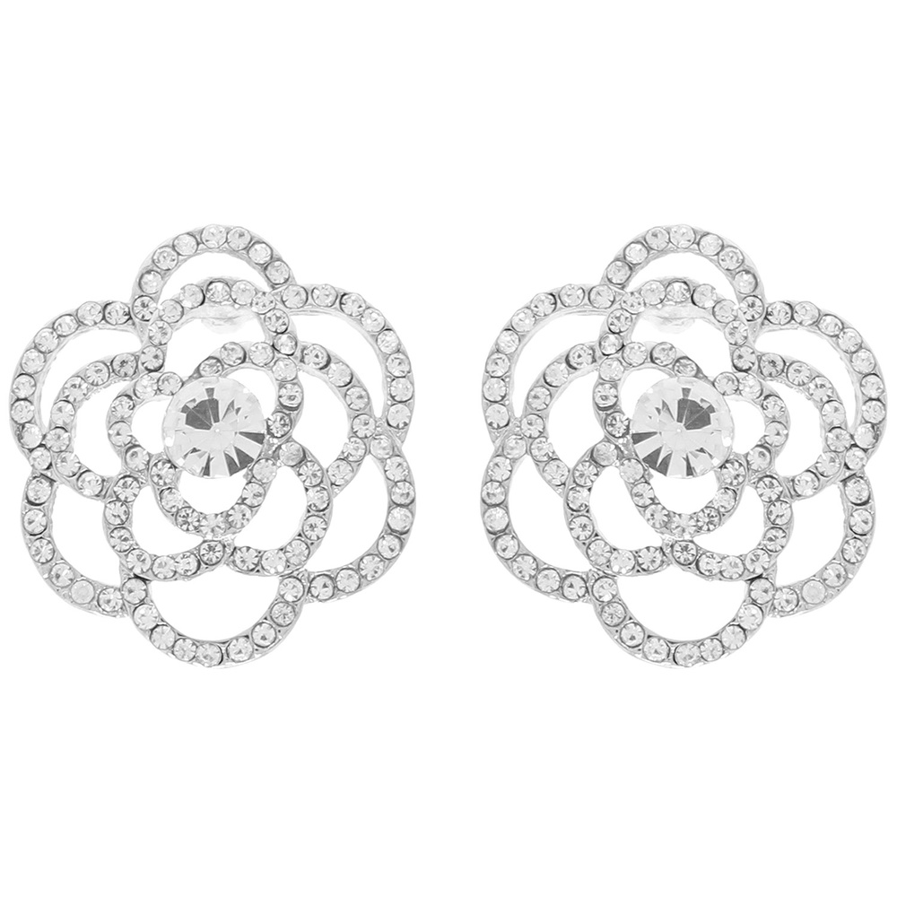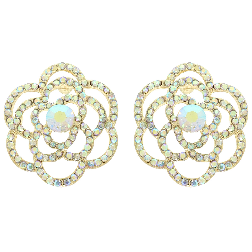 CRYSTAL RHINESTONE PAVE CUT-OUT CAMELLIA FLOWER POST EARRINGS
