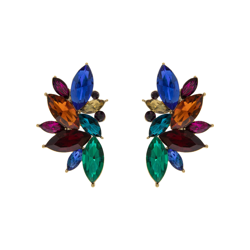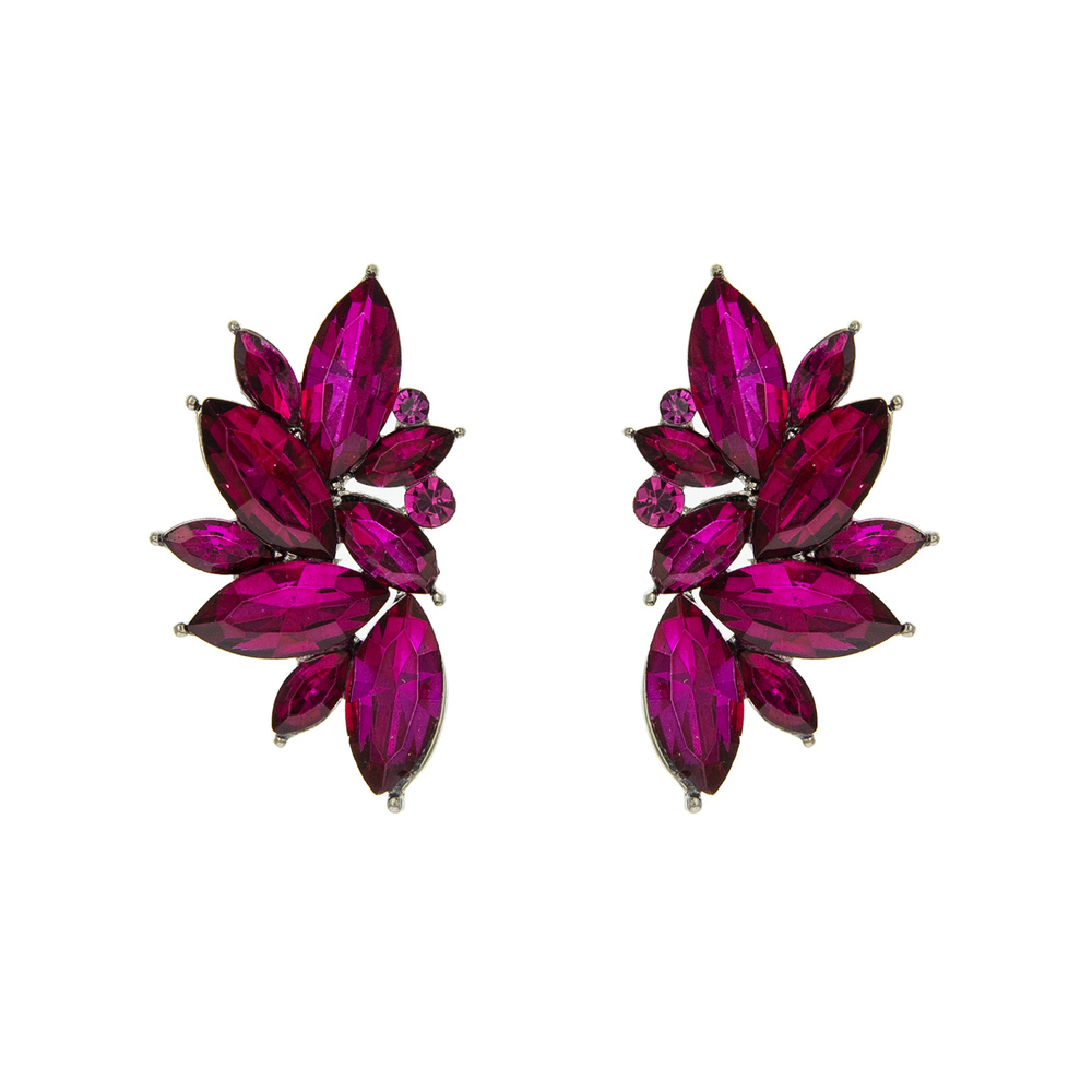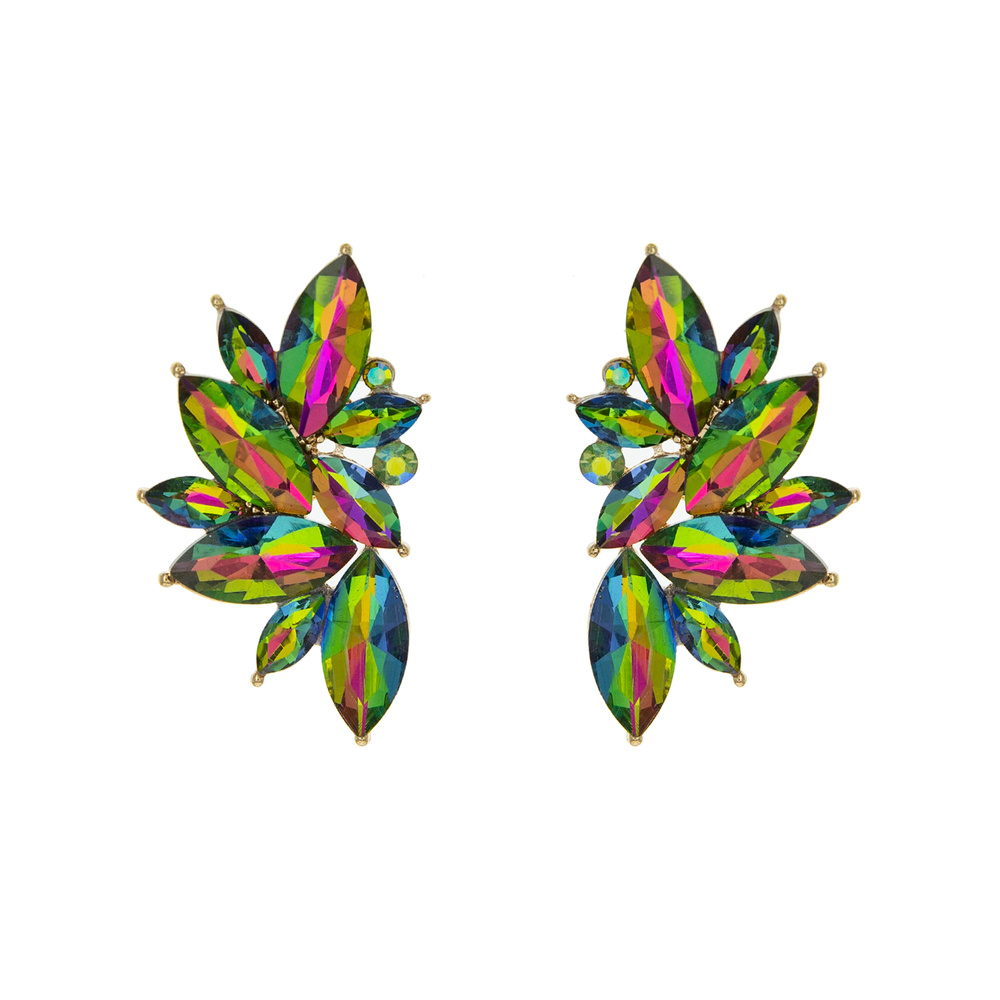 MARQUISE CUT CRYSTAL CLUSTER CURVED POST DROP EARRINGS
