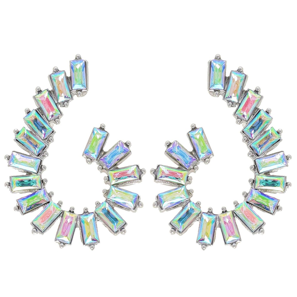 Baguette Cut Crystal Gemstone Swirl Drop Earrings