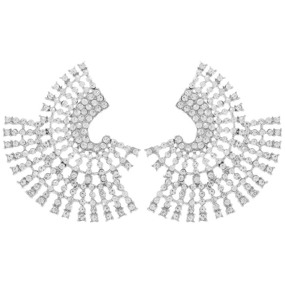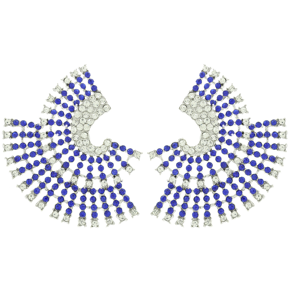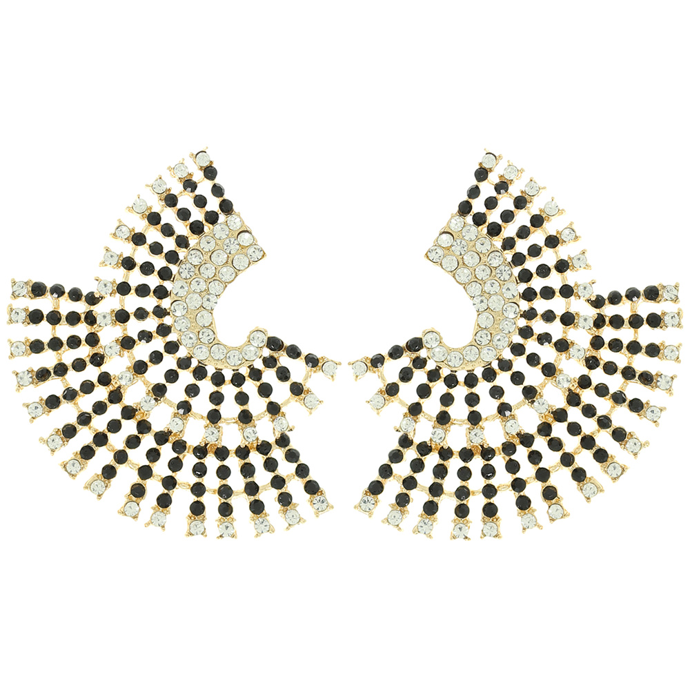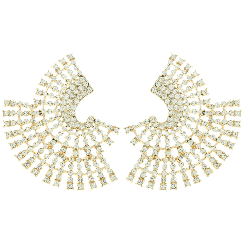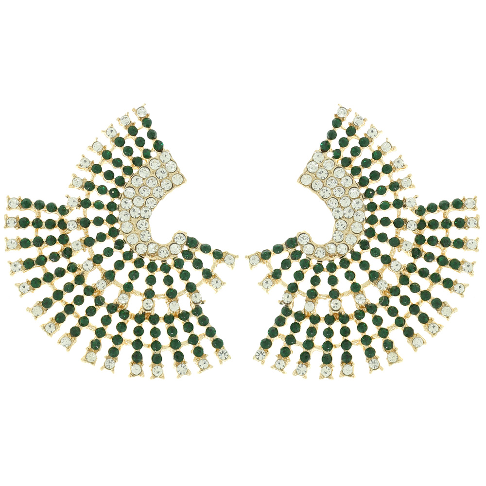 FASHION SPINEL MULTI-COLORED ROUND CUT RHINESTONE OPEN FAN EARRINGS