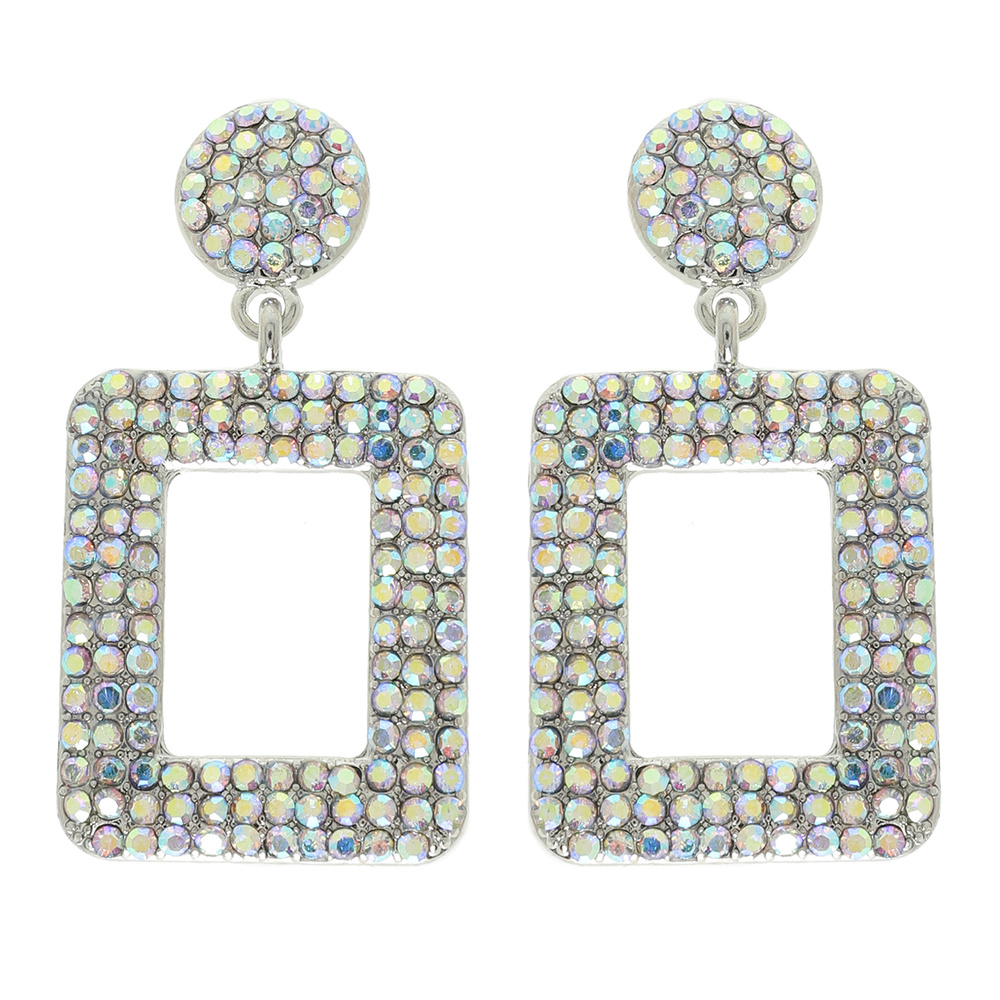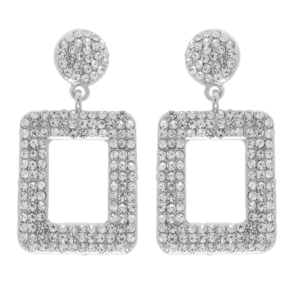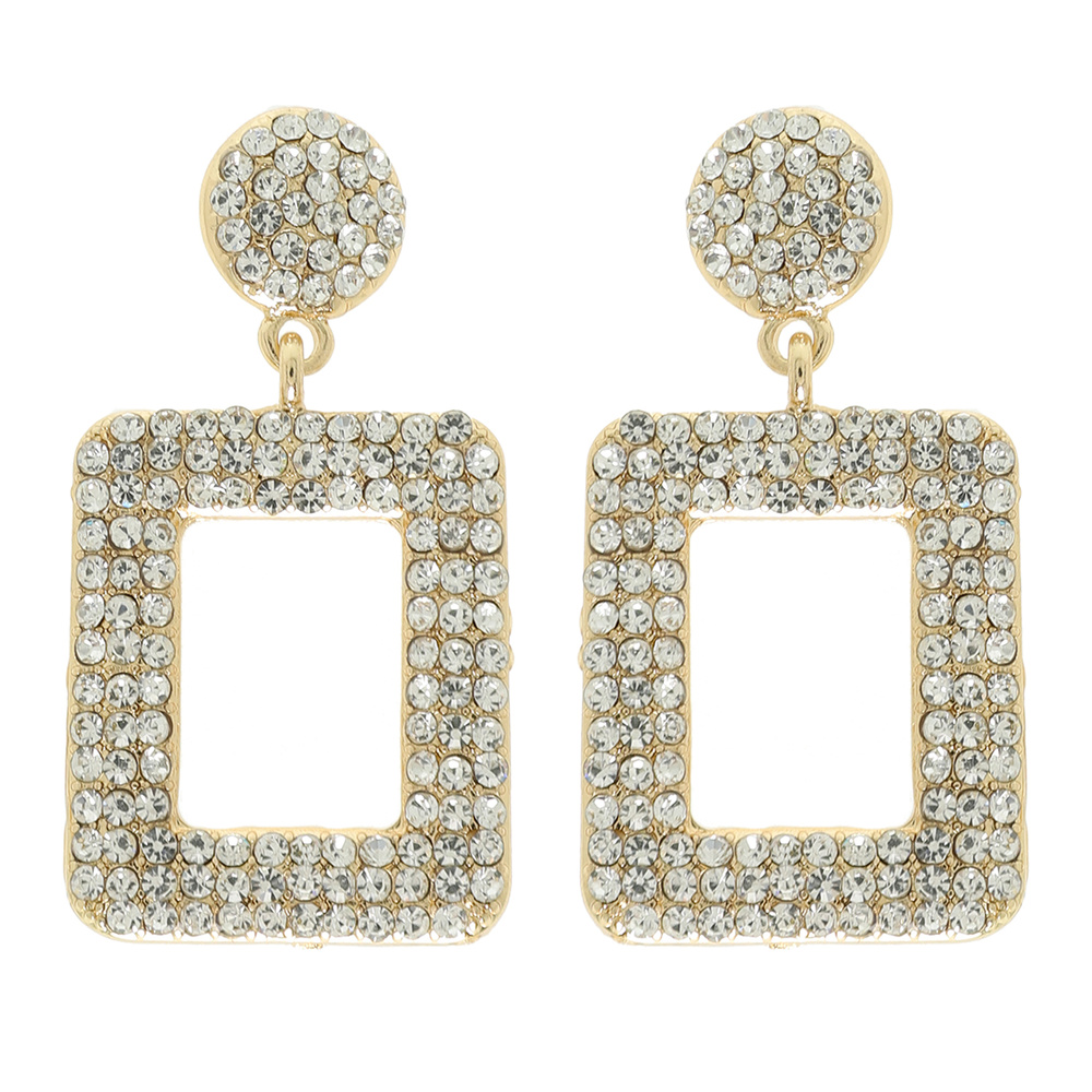 TWO-TIER RHINESTONE PAVE OPEN RECTANGULAR POST EARRINGS