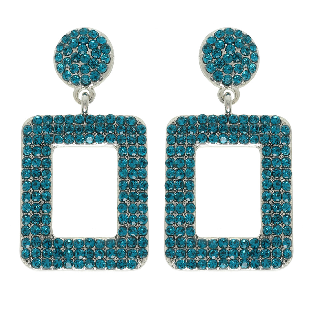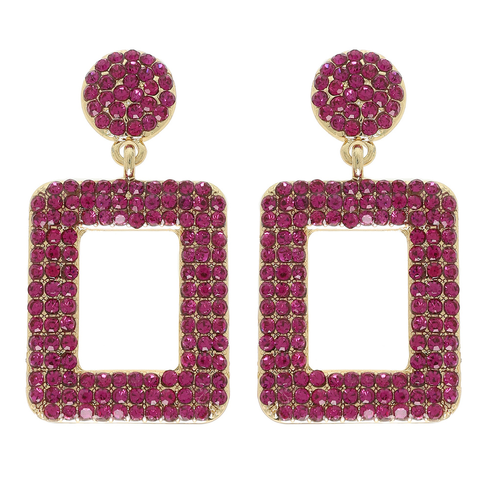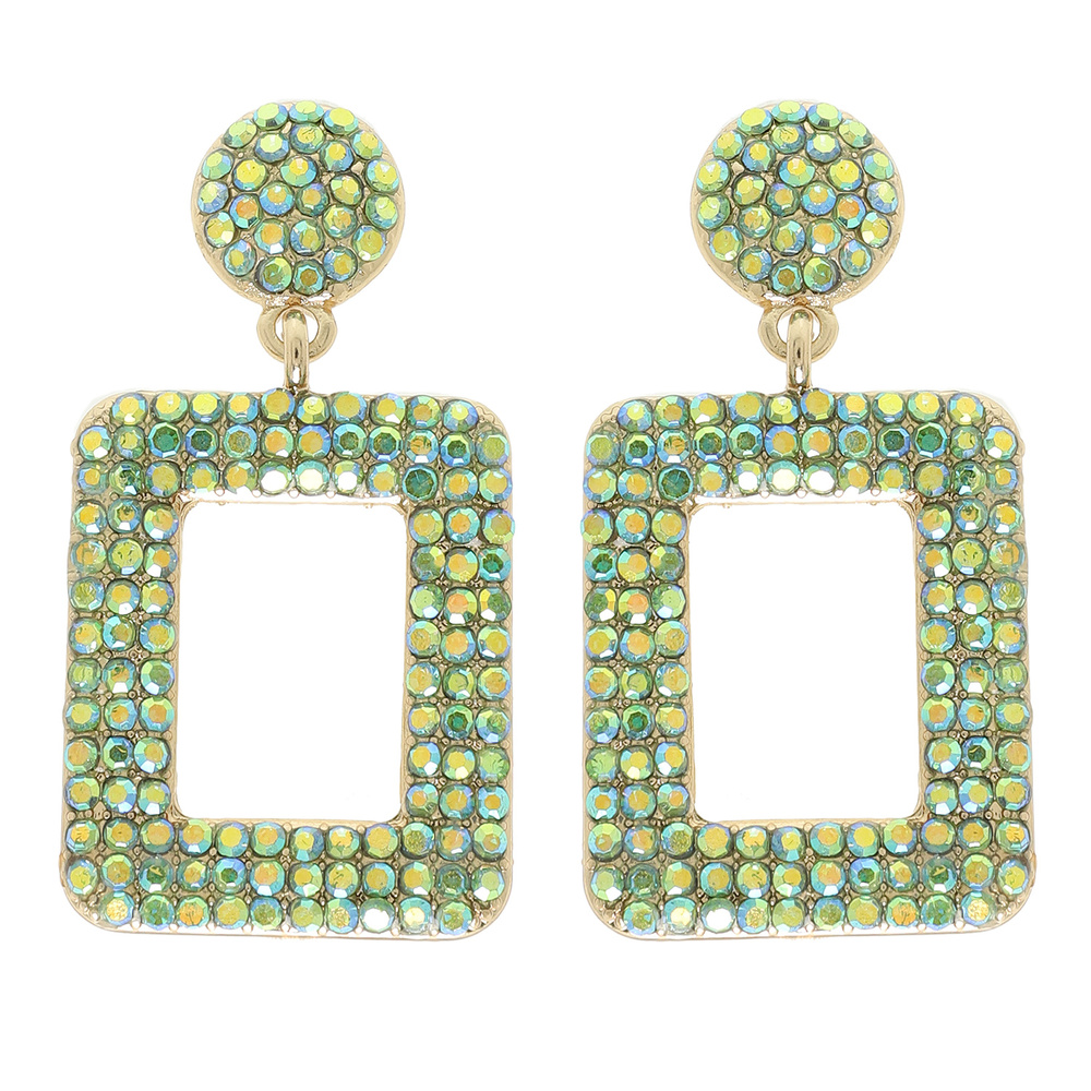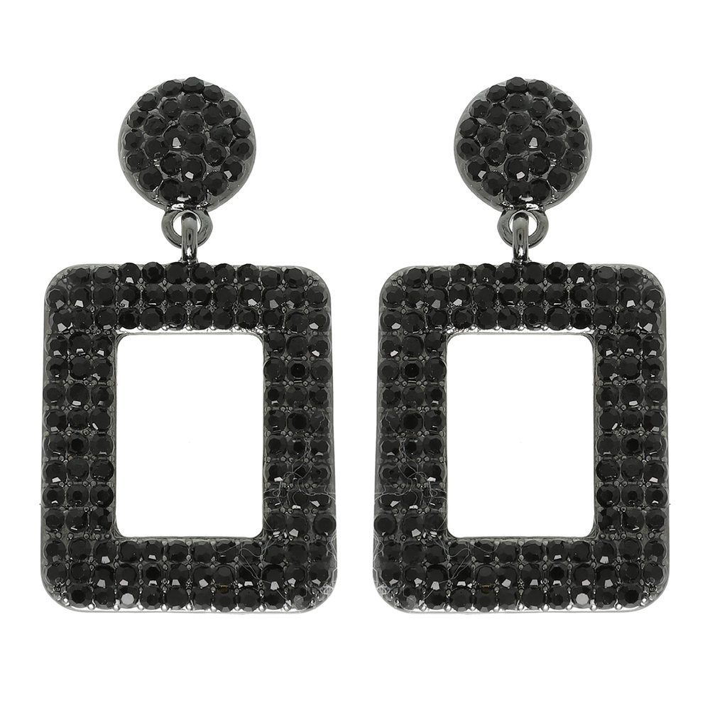 TWO-TIER RHINESTONE PAVE OPEN RECTANGULAR POST EARRINGS