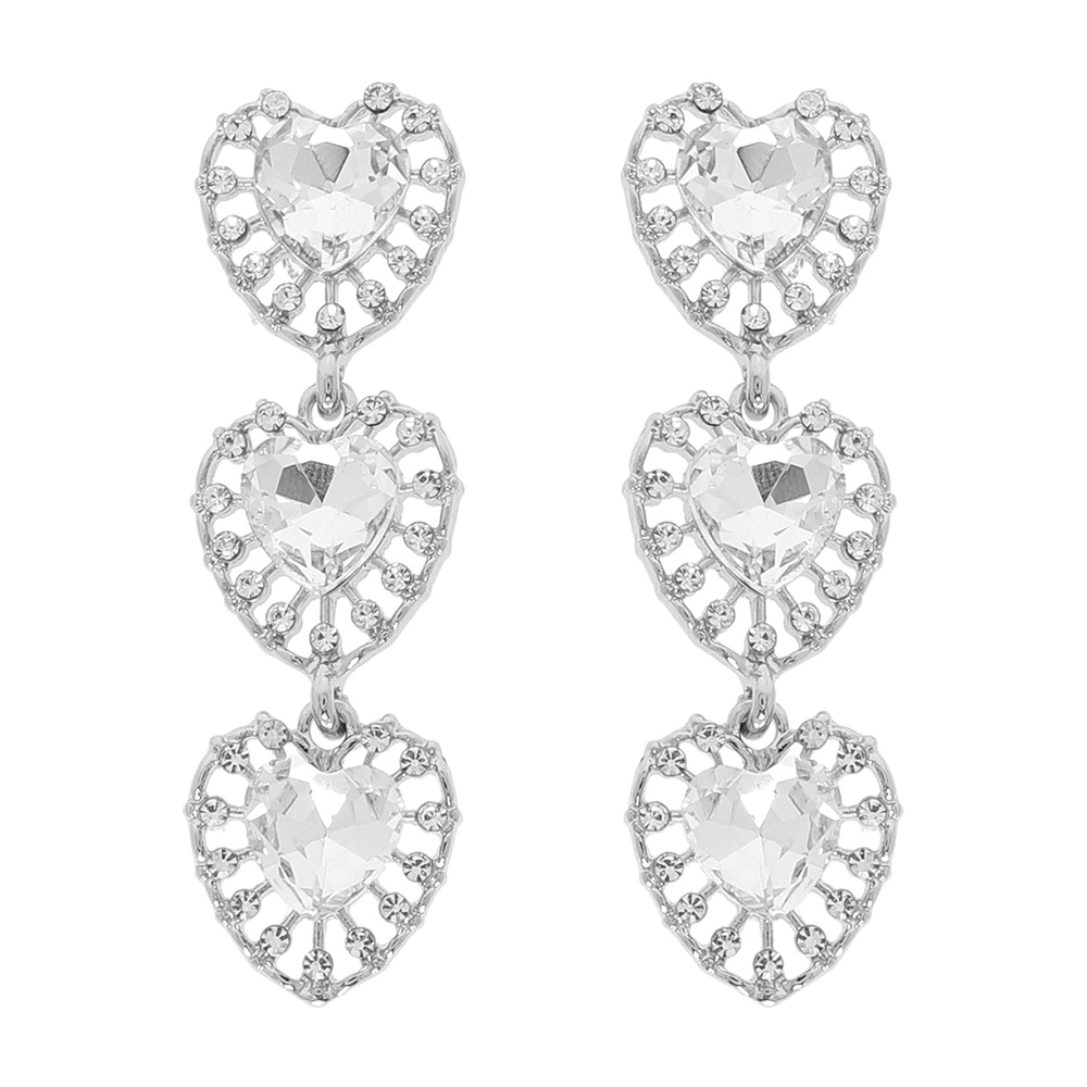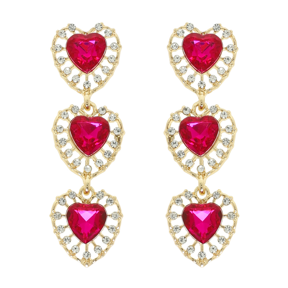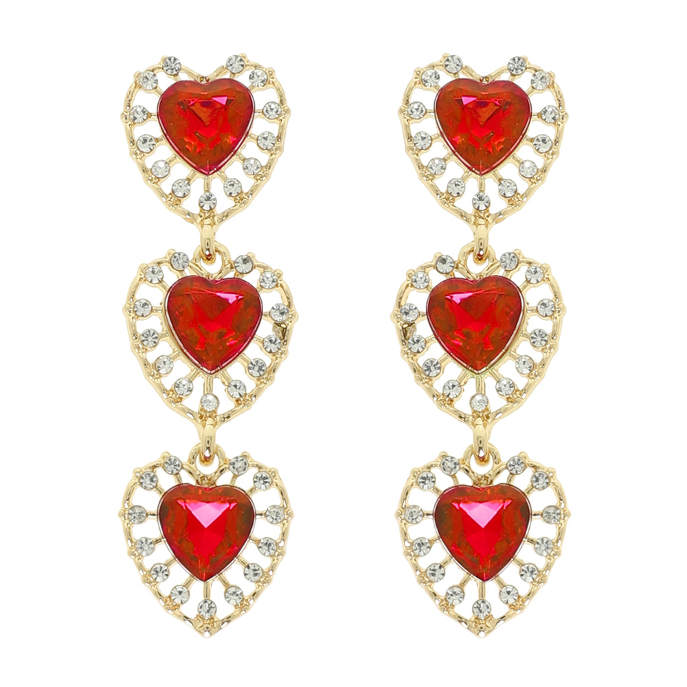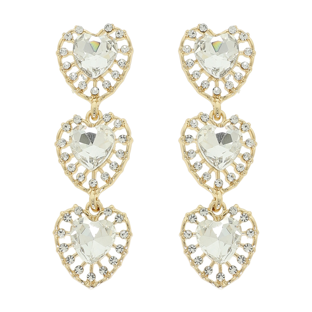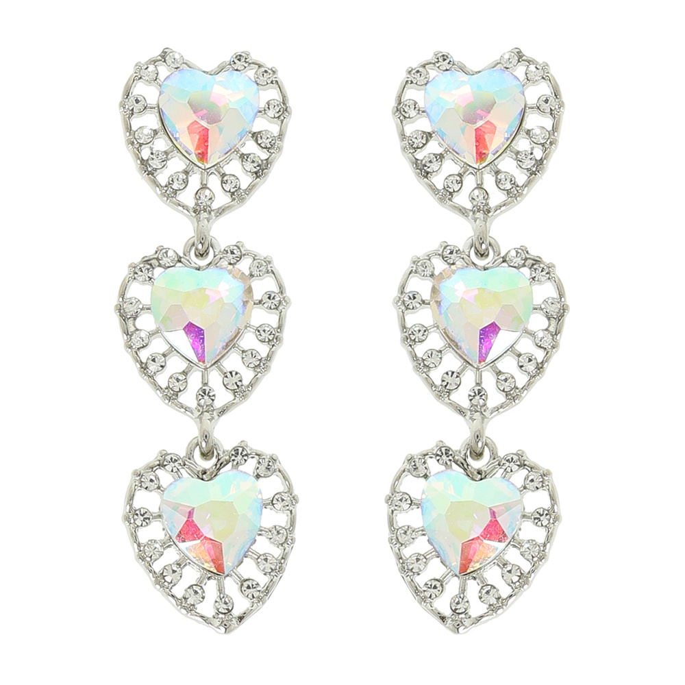 METALLIC CRYSTAL HEART WITH RHINESTONE HALO LINEAR POST EARRINGS
