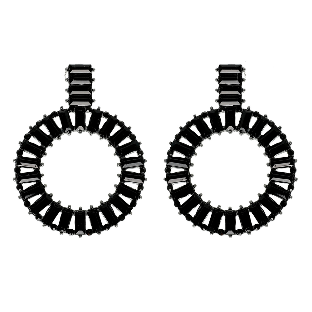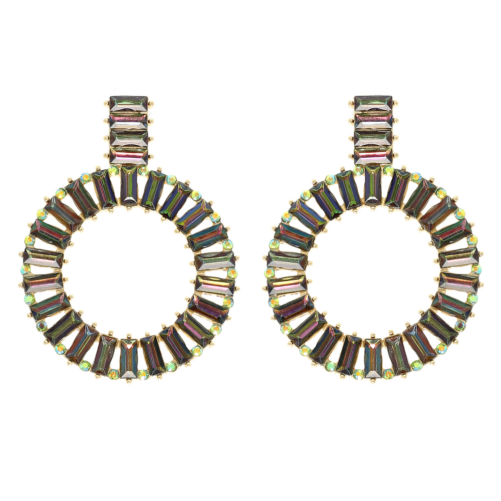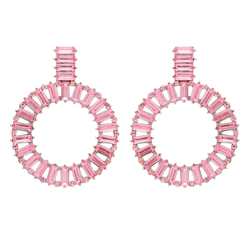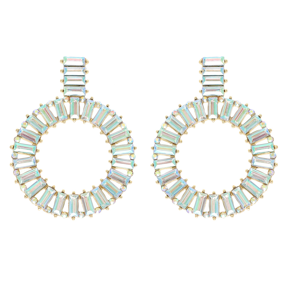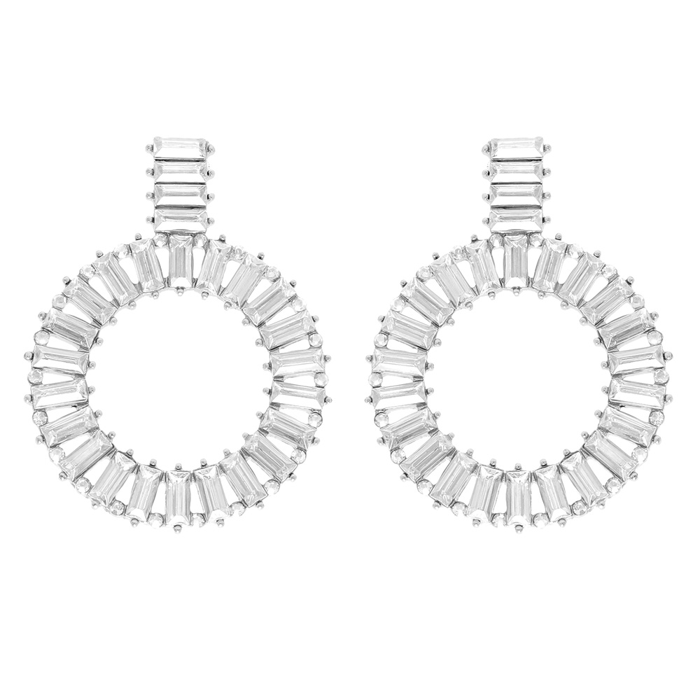 2-TIER BAGUETTE CUT GEMSTONE RHINESTONE PAVE CIRCLE STUD EARRINGS