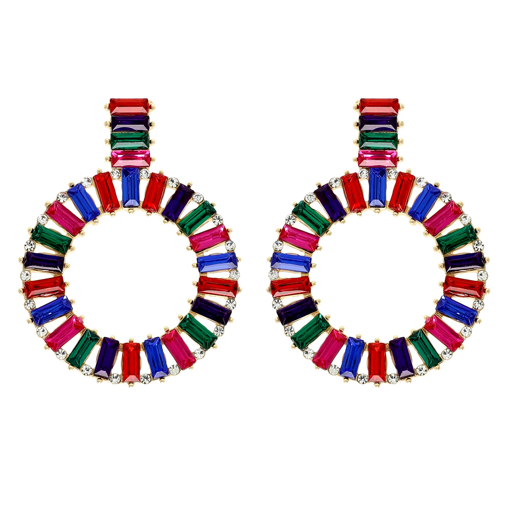Baguette Cut Gemstone Circle Stud Earrings