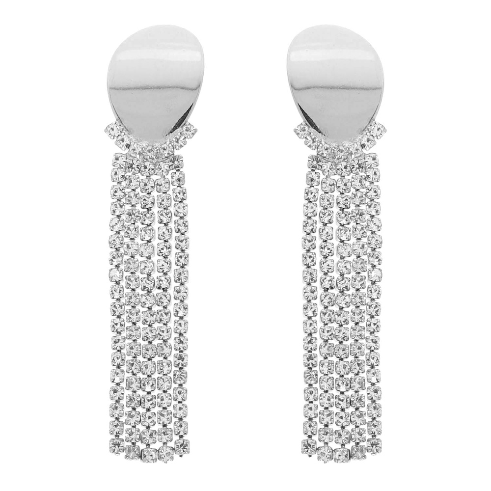 Oval Top Rhinestone Tassel Earrings