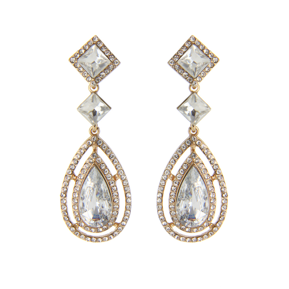 DOUBLE DROP RHINESTONE EARRINGS W/GEMS