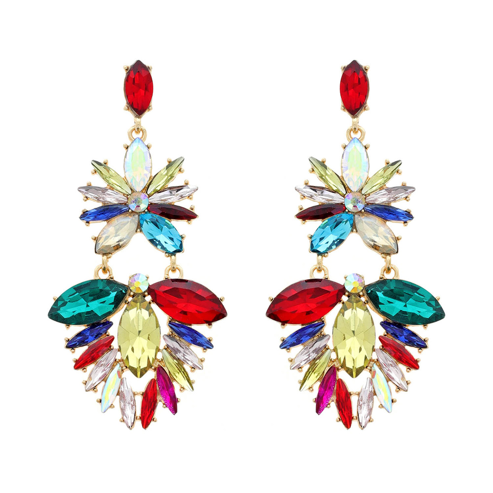 FASHION 3-TIER CRYSTAL GEMSTONE CHANDELIER DROP EARRINGS