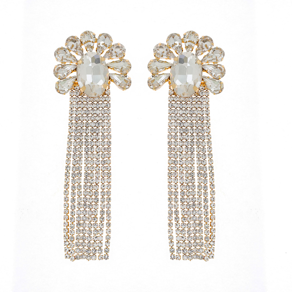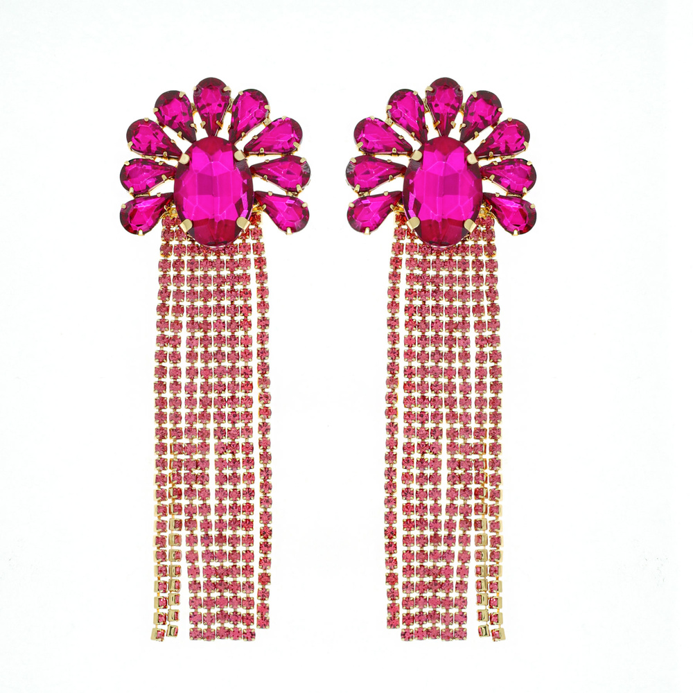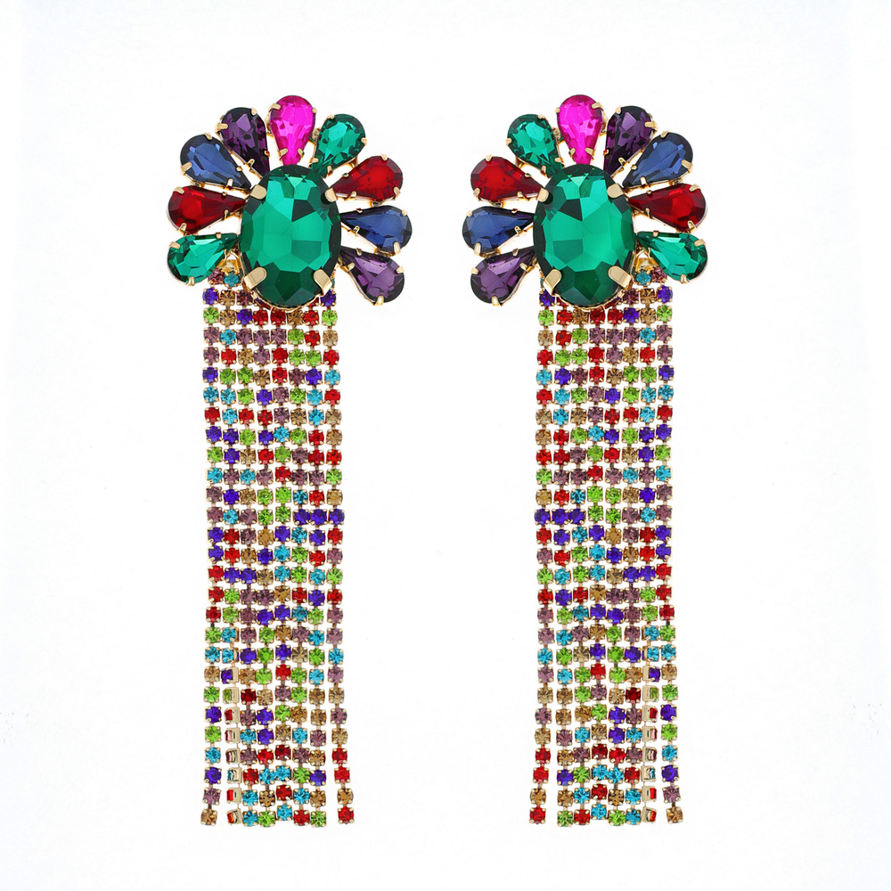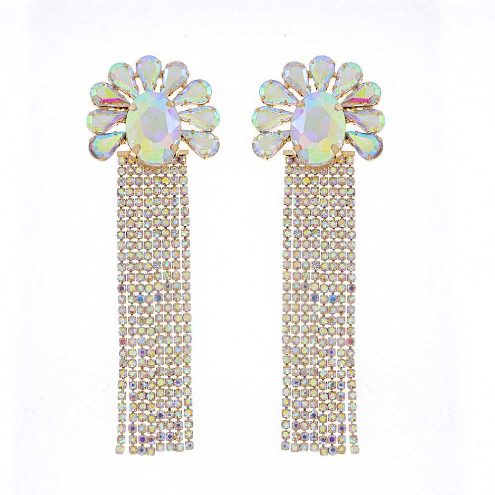 Floral Crystal Gems Chandelier Long Tassel Rhinestone Drop Earrings