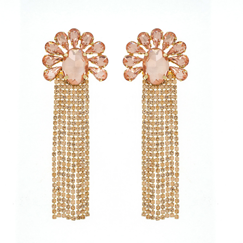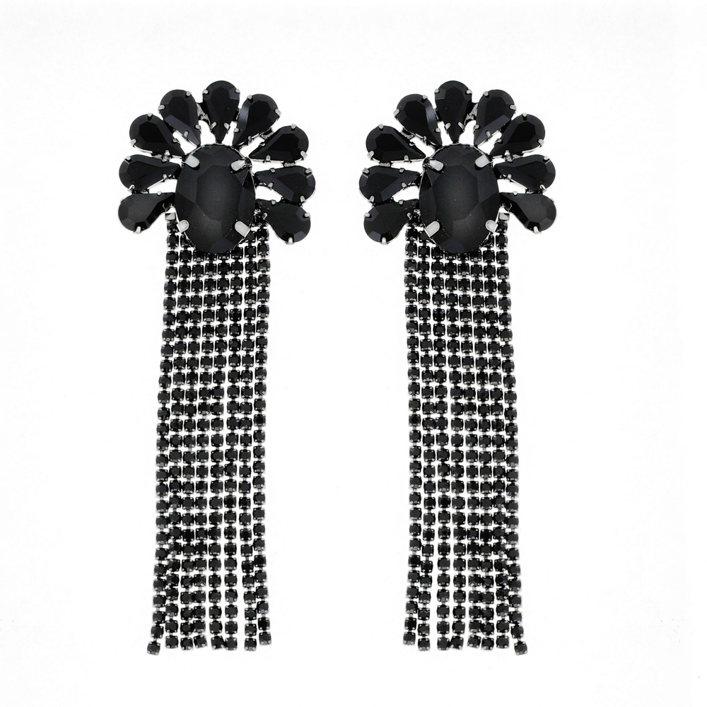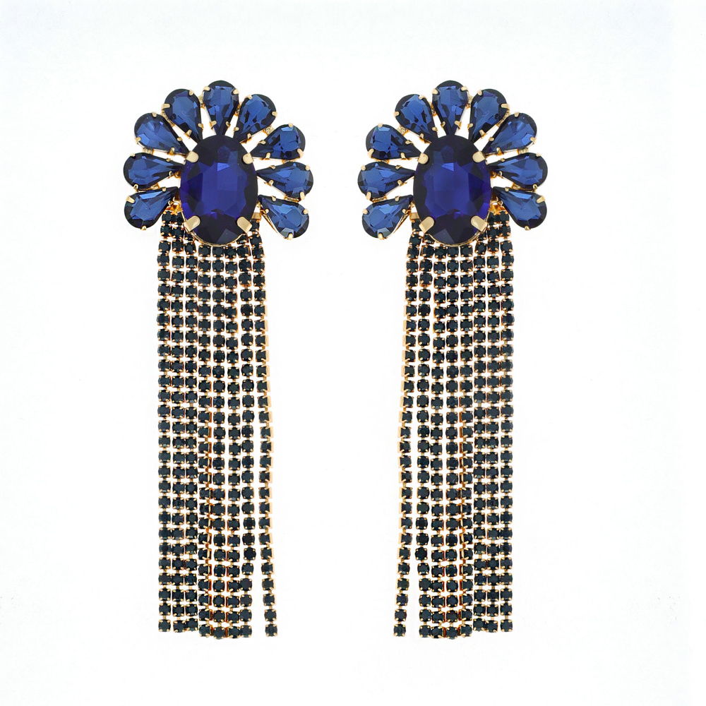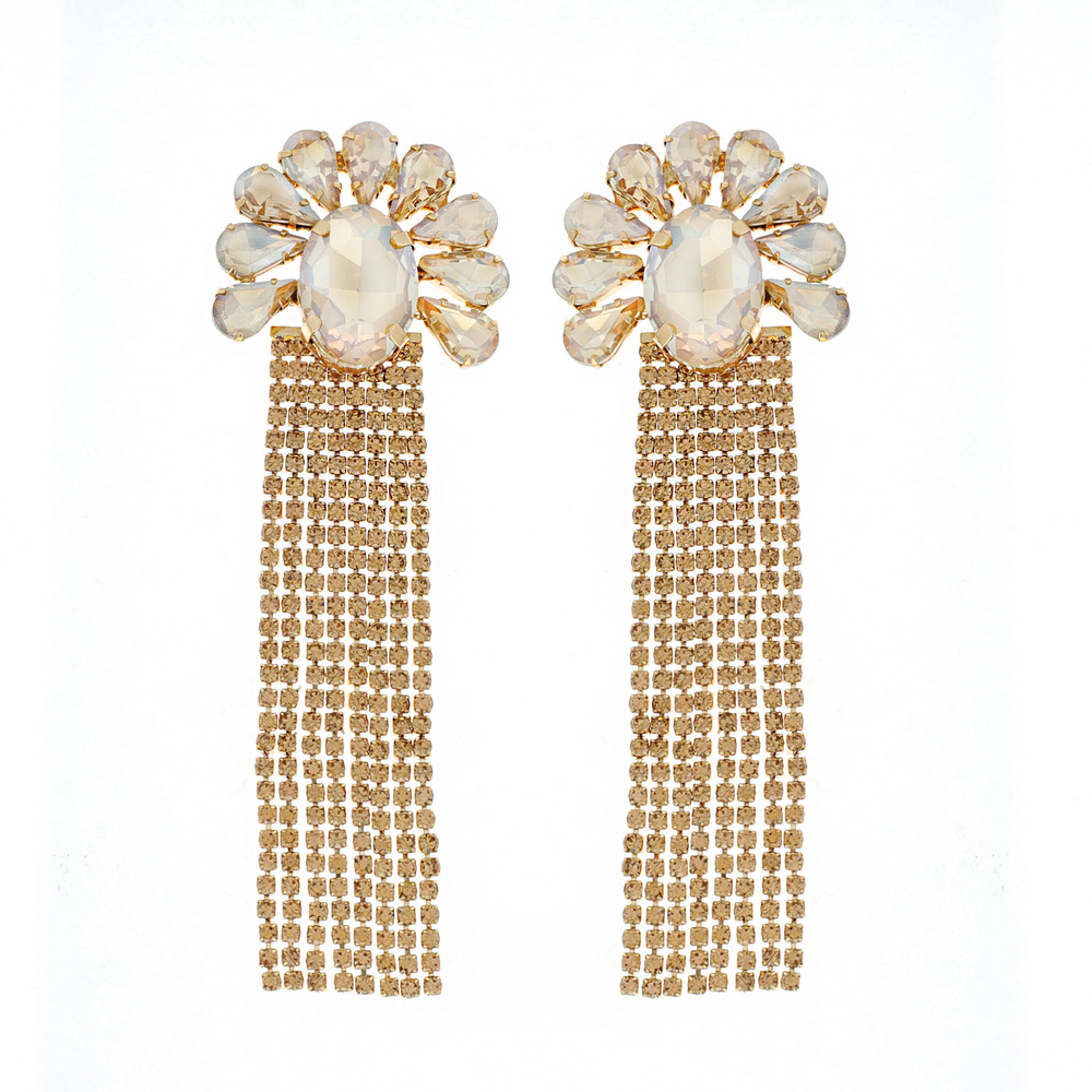 Floral Crystal Gems Chandelier Long Tassel Rhinestone Drop Earrings