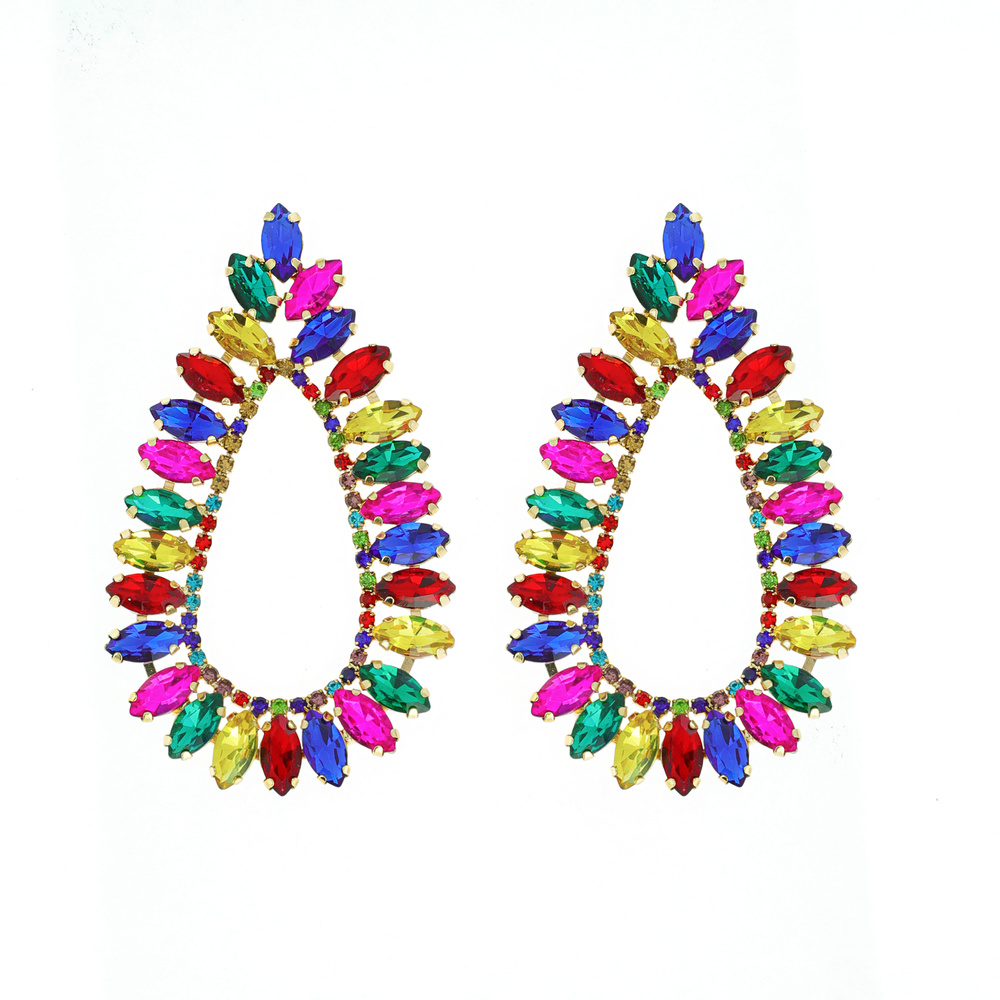 LARGE STATEMENT OPEN TEARDROP CRYSTAL MARQUISE DROP EARRINGS
