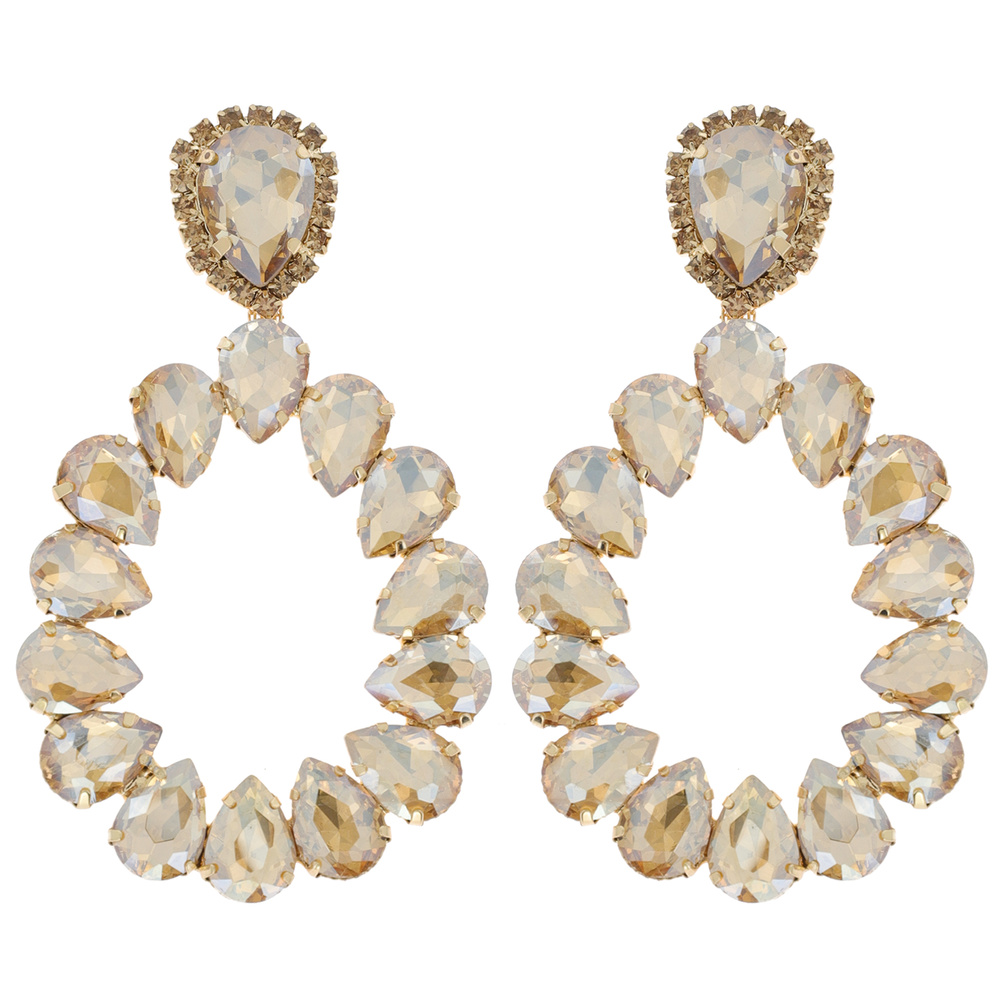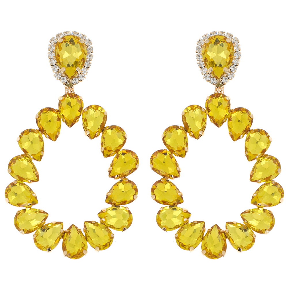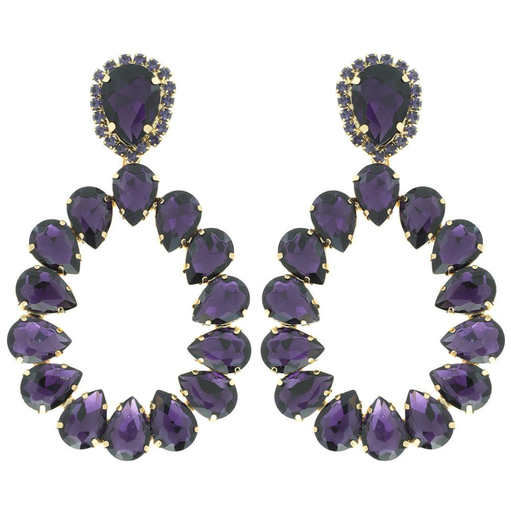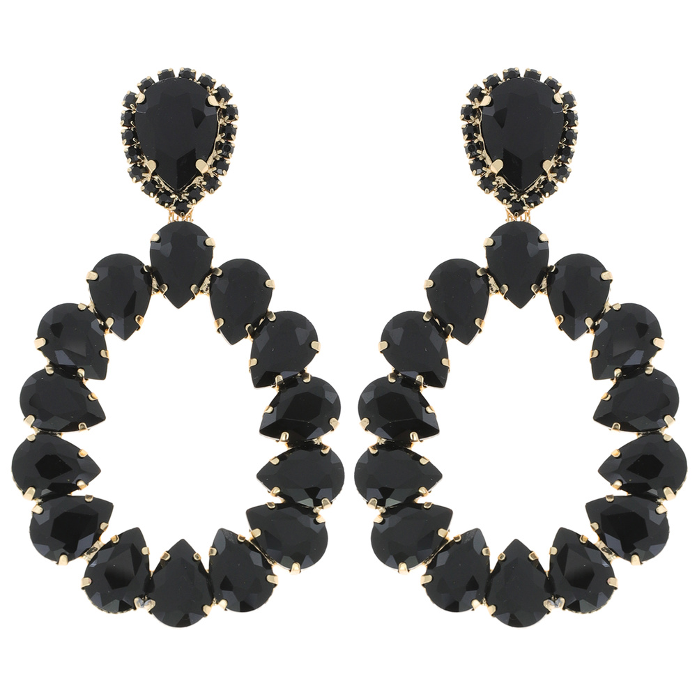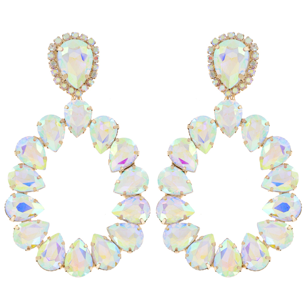 Evening Glam Crystal Stone Open Teardrop Hoop Drop Earrings In Gold & Silver Tone Metal