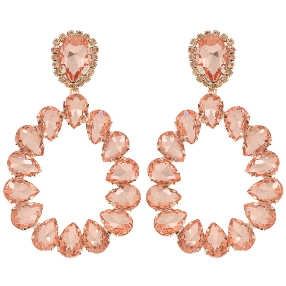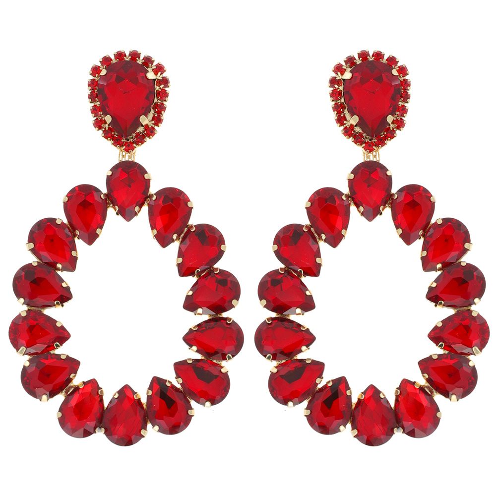 EVENING GLAM CRYSTAL STONE OPEN TEARDROP HOOP DROP EARRINGS IN GOLD & SILVER TONE METAL