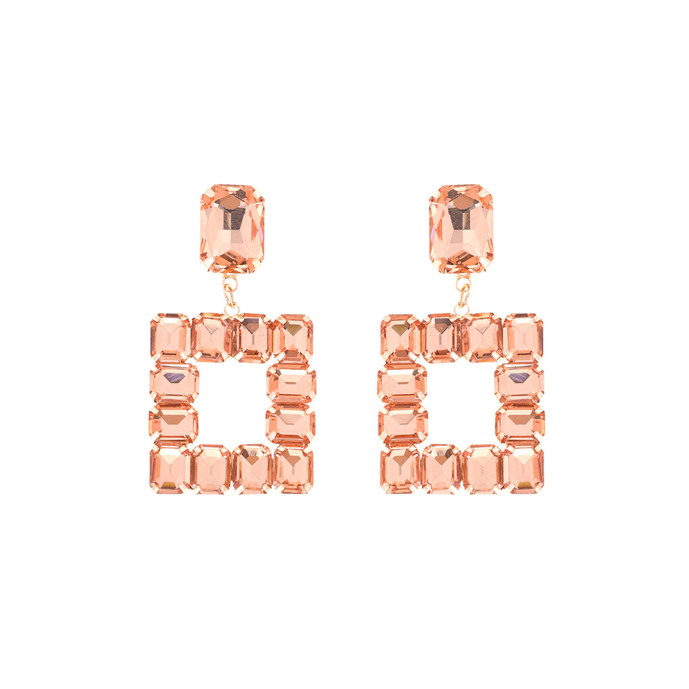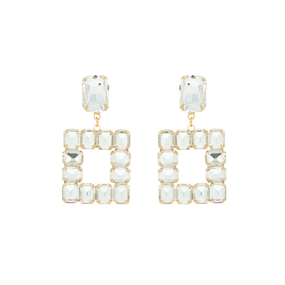 Geometric Crystal Gems Open Square Dangle Earrings