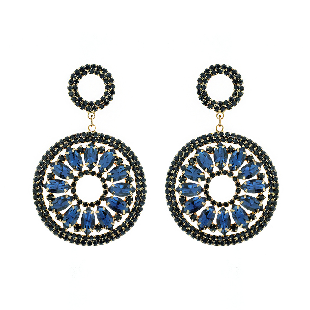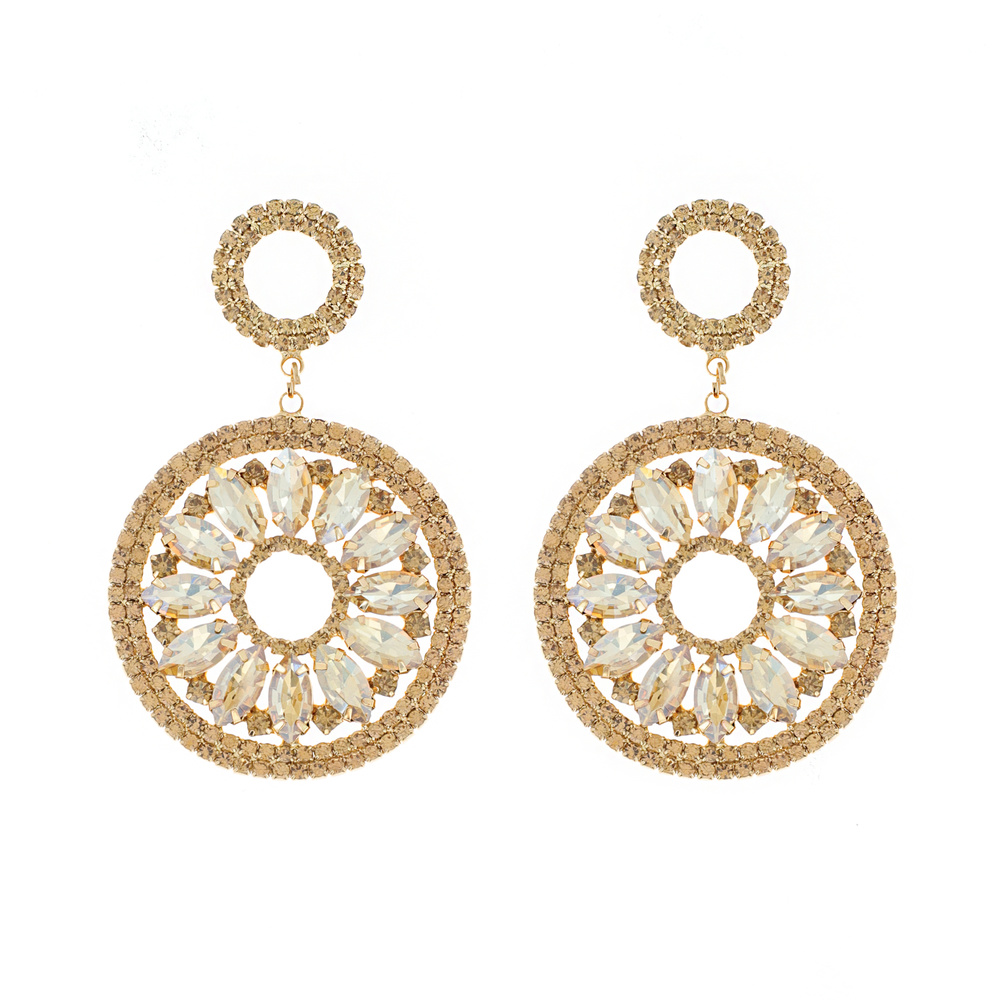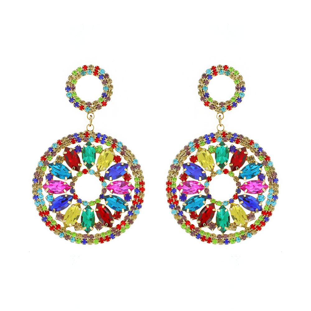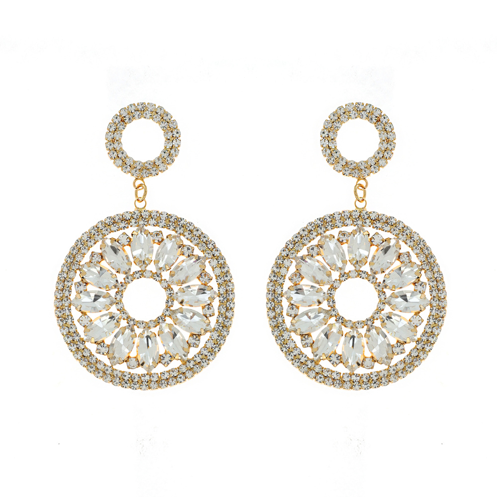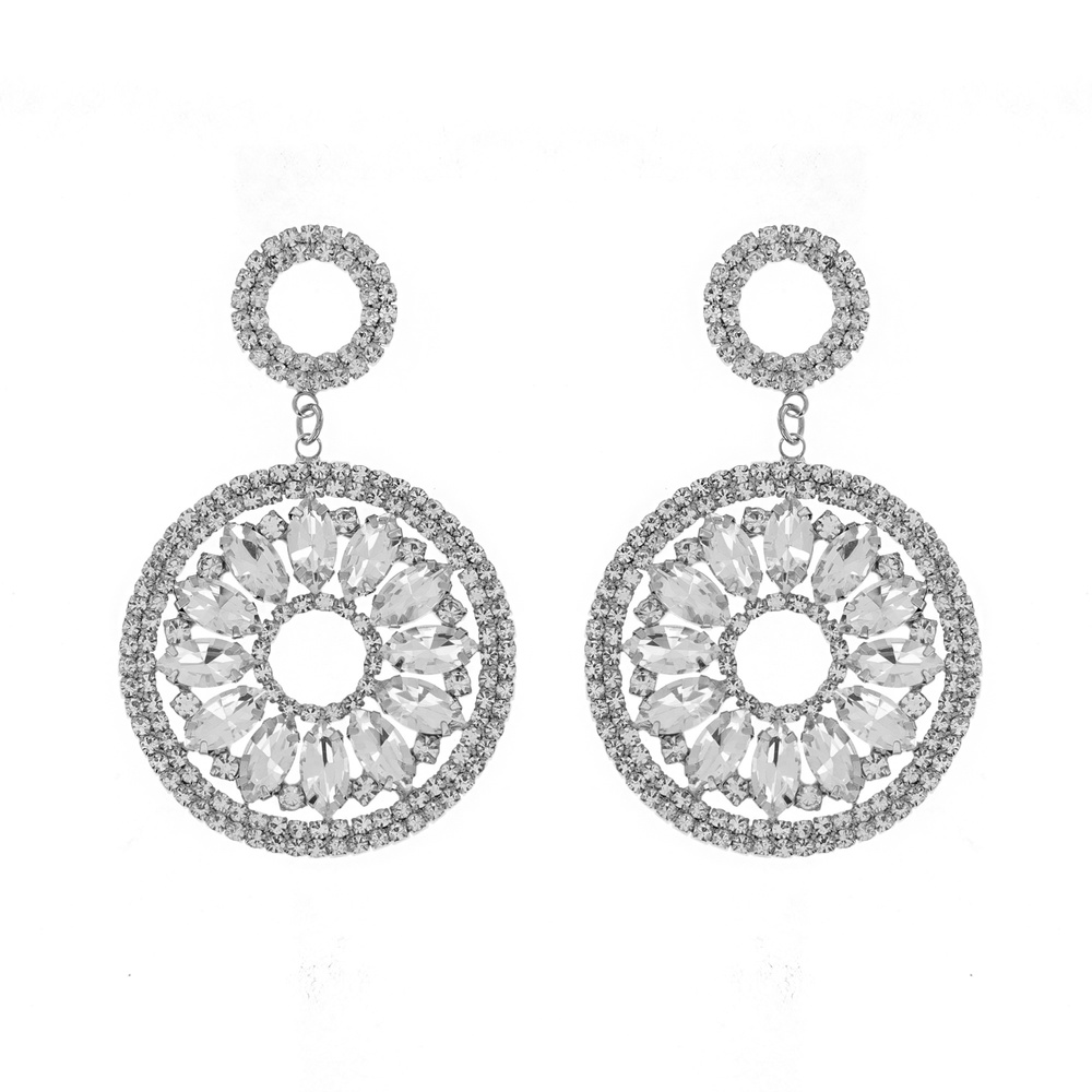 Large Statement 2-tier Rhinestone Pave Open Circle Marquise Long Drop Earrings