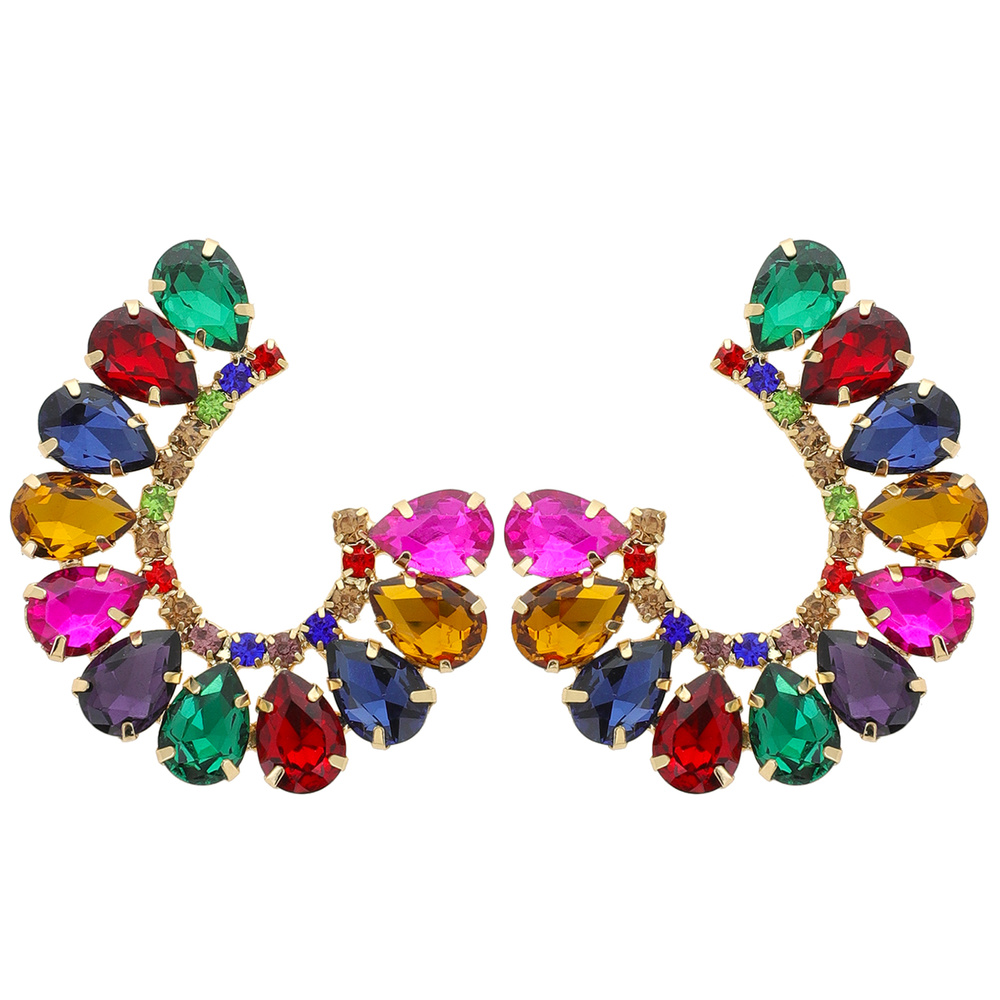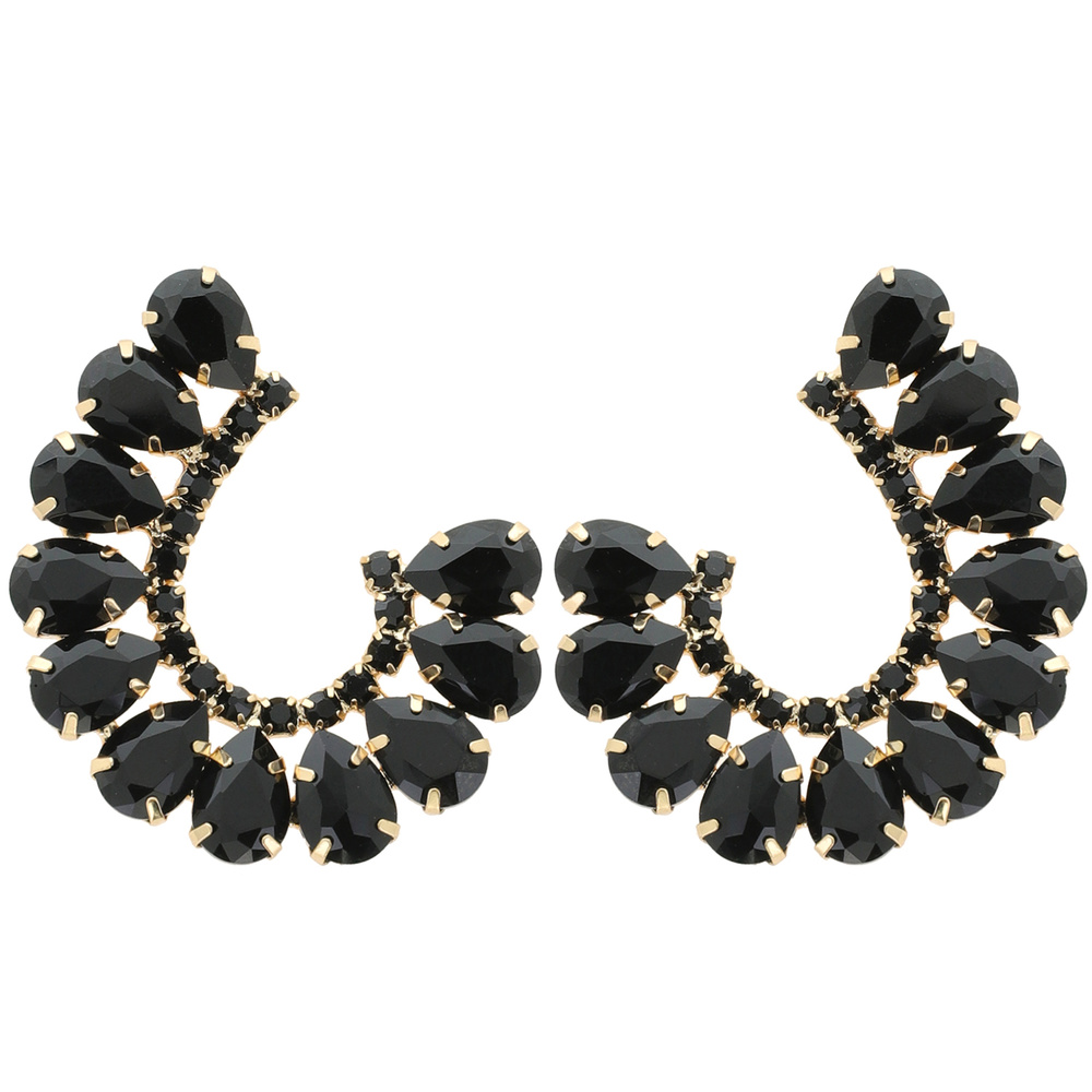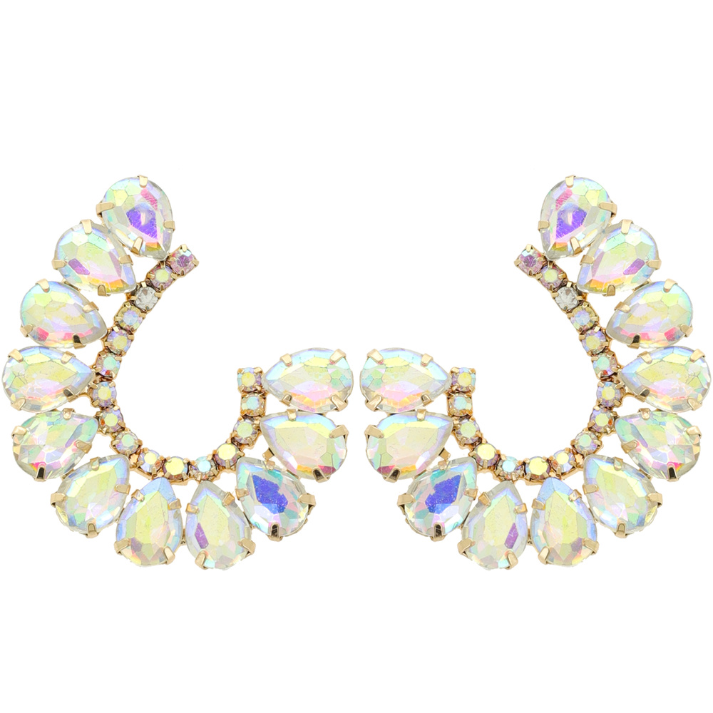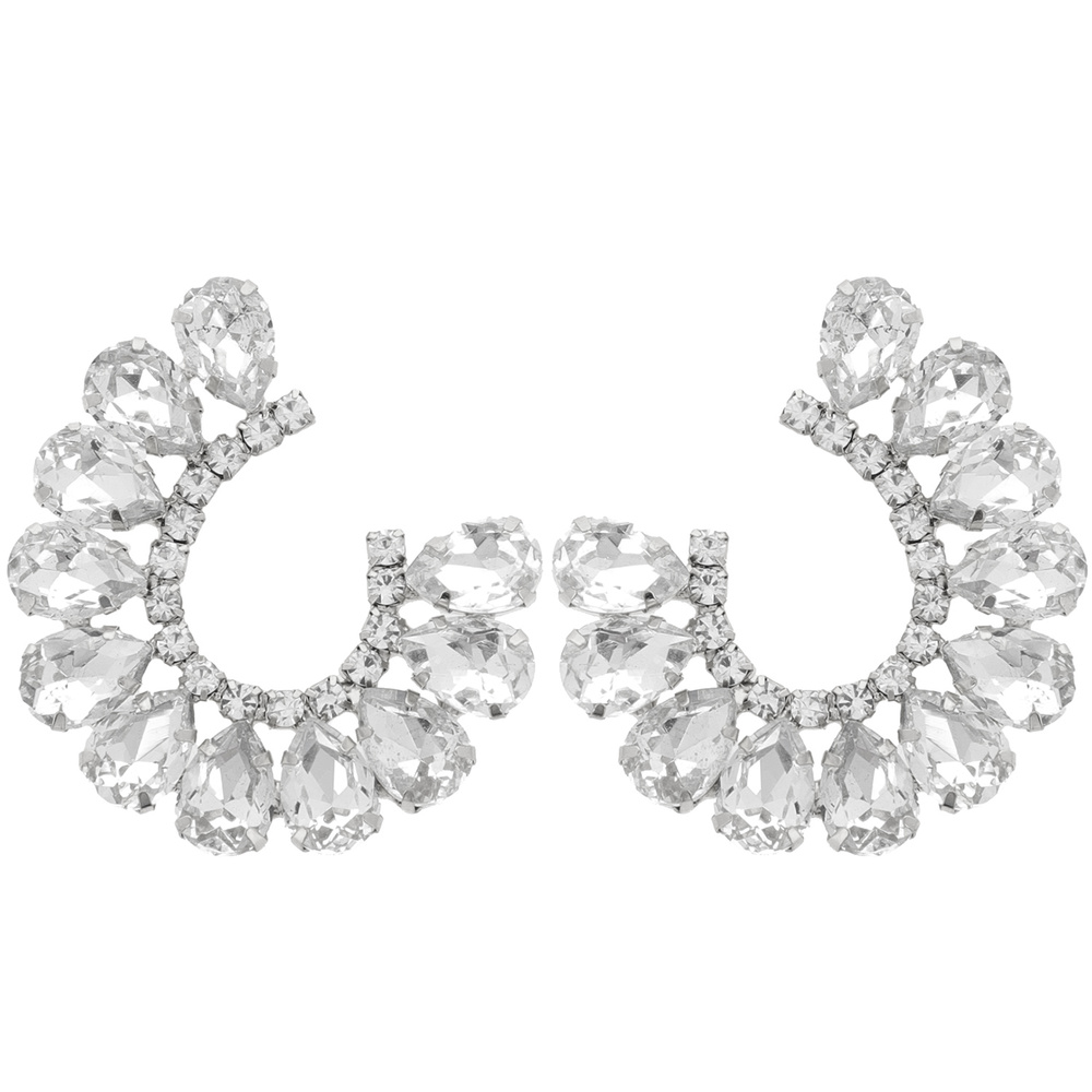 EVENING GLAM CRYSTAL C-SHAPE OPEN HOOP DROP EARRINGS