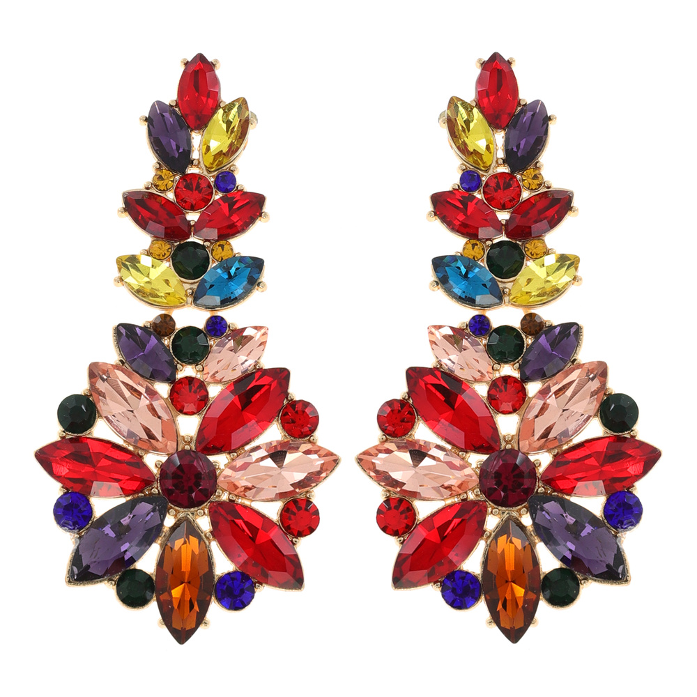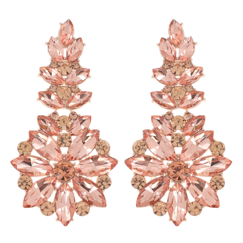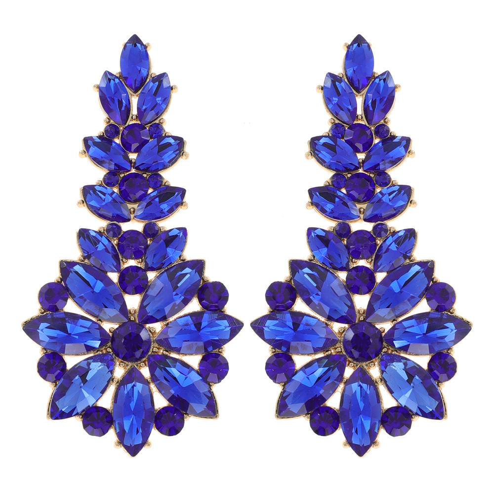Floral Marquise Crystal Cluster Rhinestone Long Drop Earrings