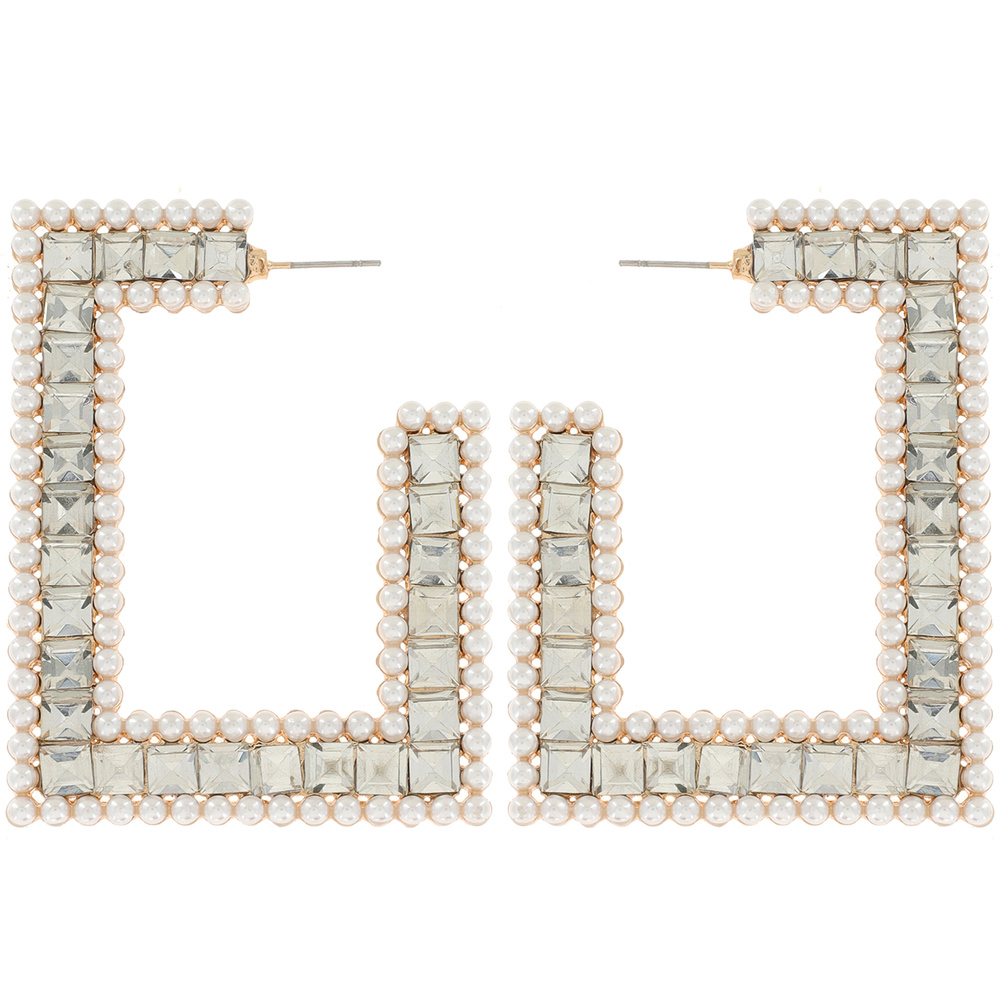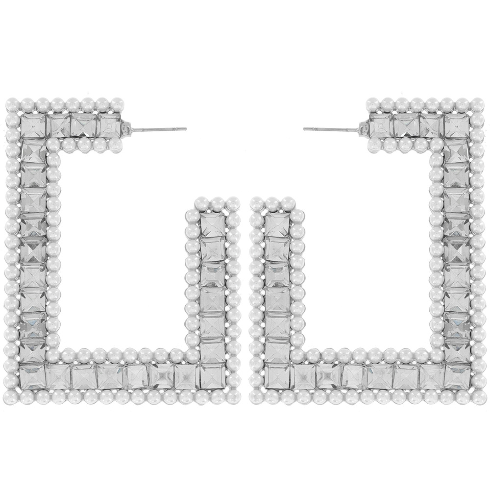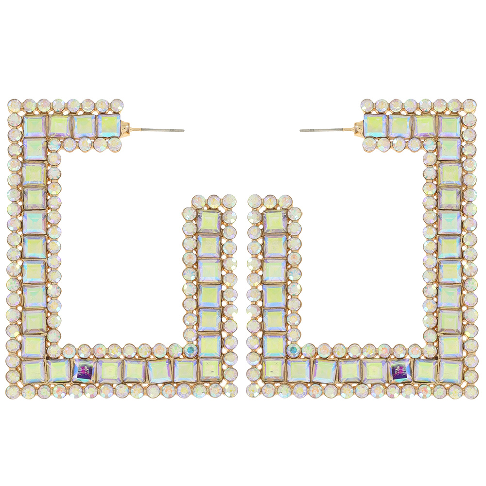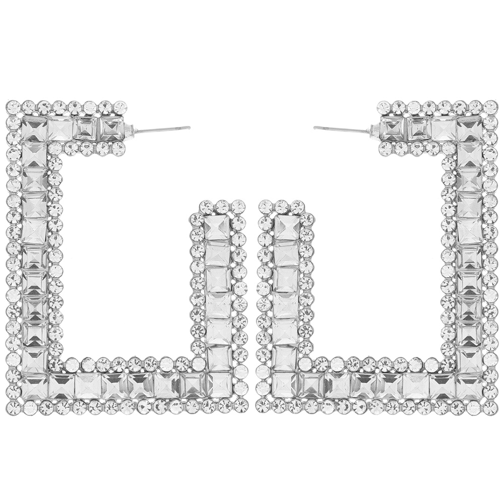 CRYSTAL RHINESTONE GEOMETRIC RECTANGULAR OPEN HOOP EARRINGS