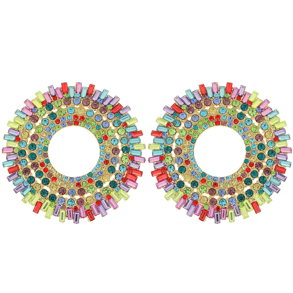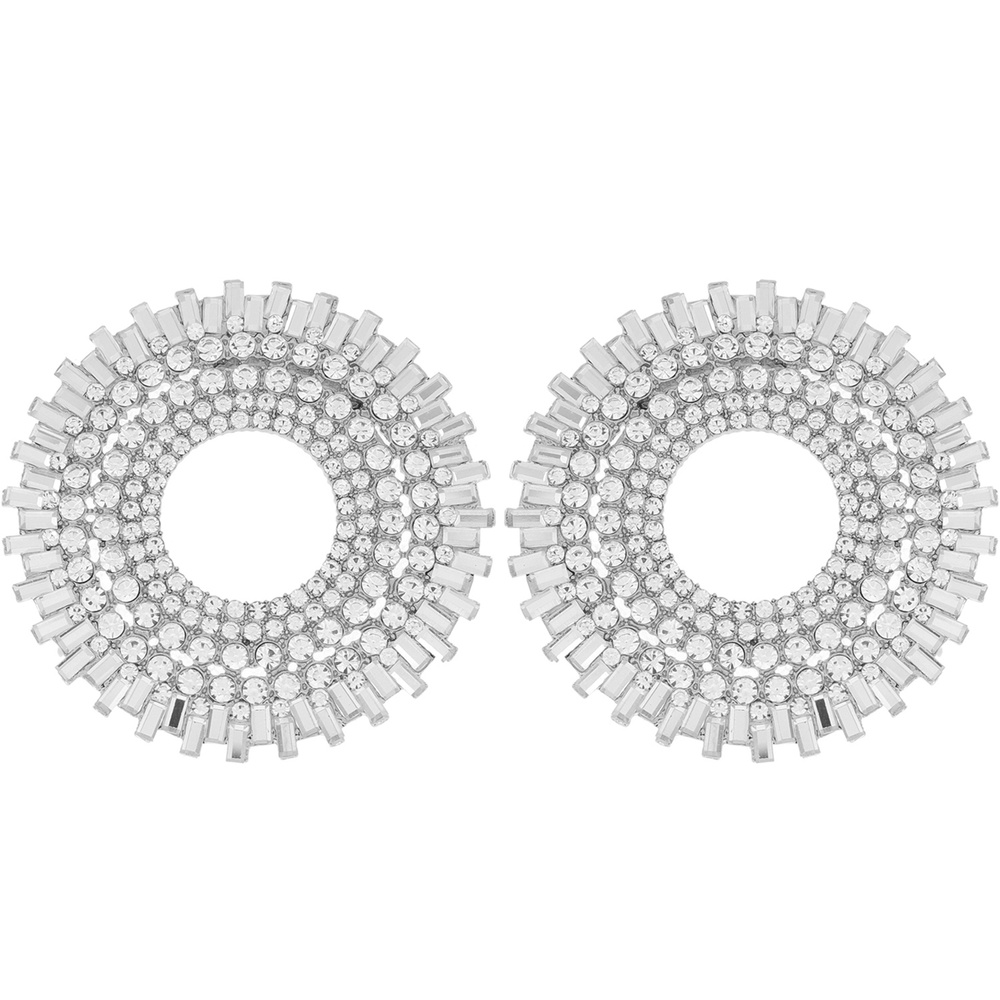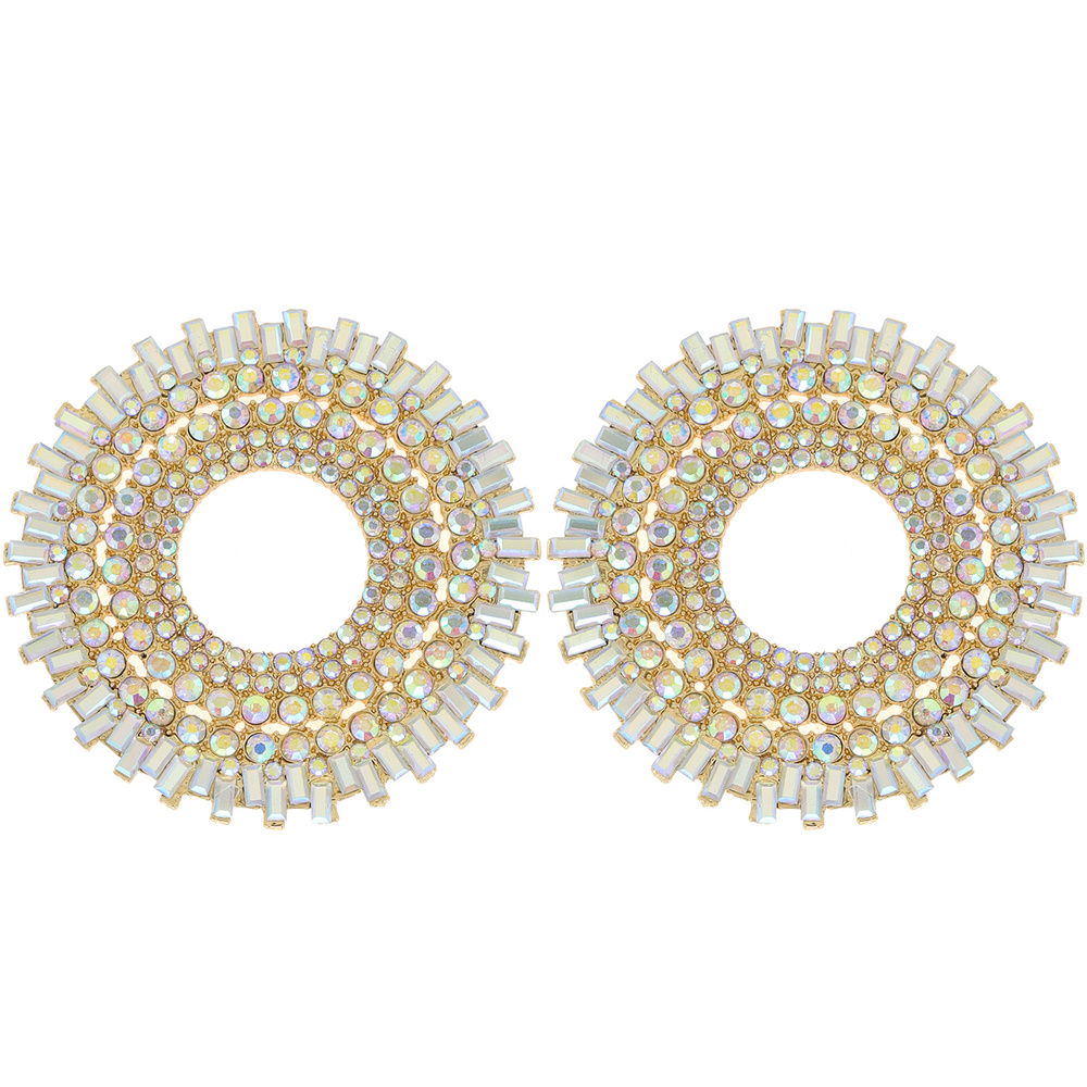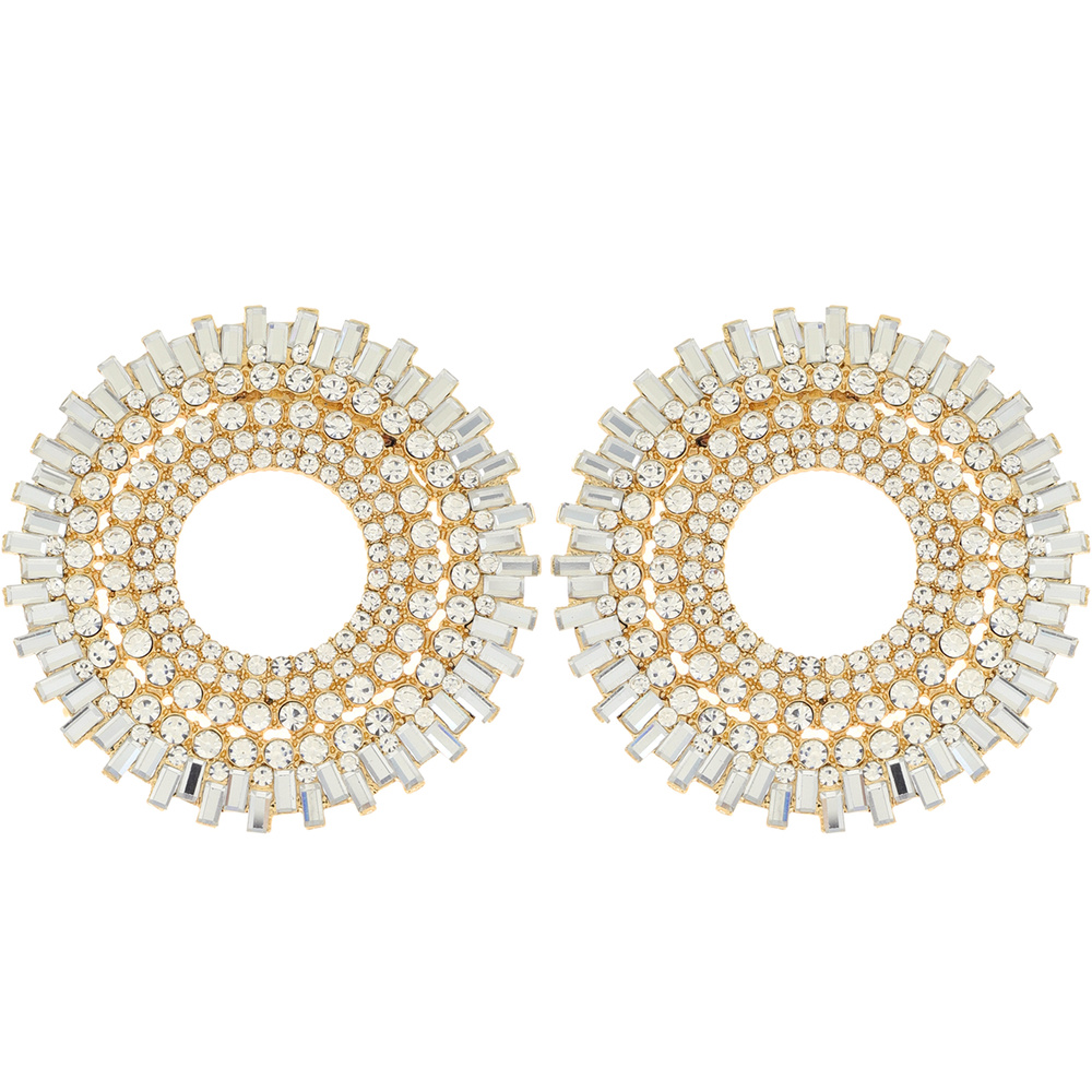 CRYSTAL OPEN CIRCLE BAGUETTE FAN STUD EARRINGS