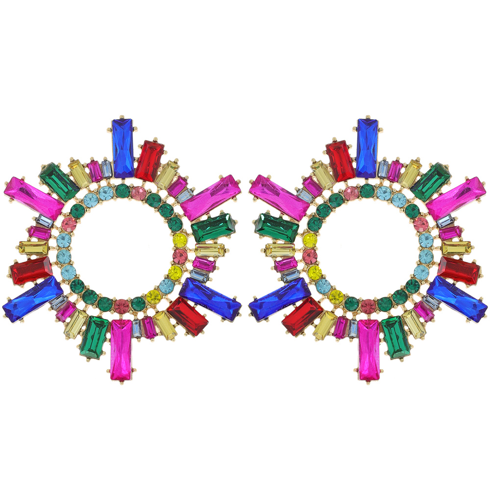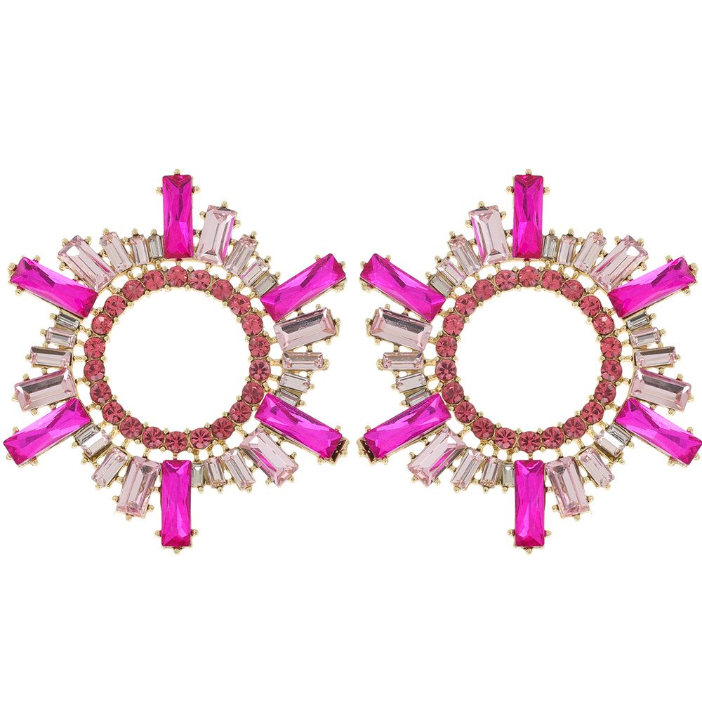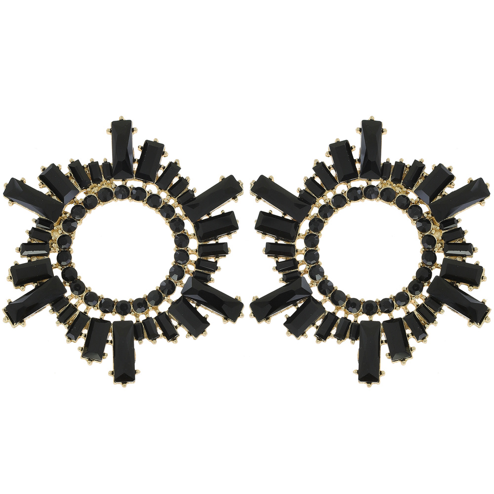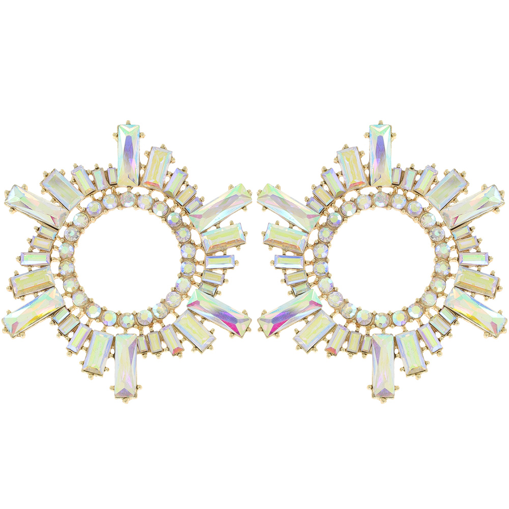 CRYSTAL OPEN CIRCLE BAGUETTE FAN STUD EARRINGS