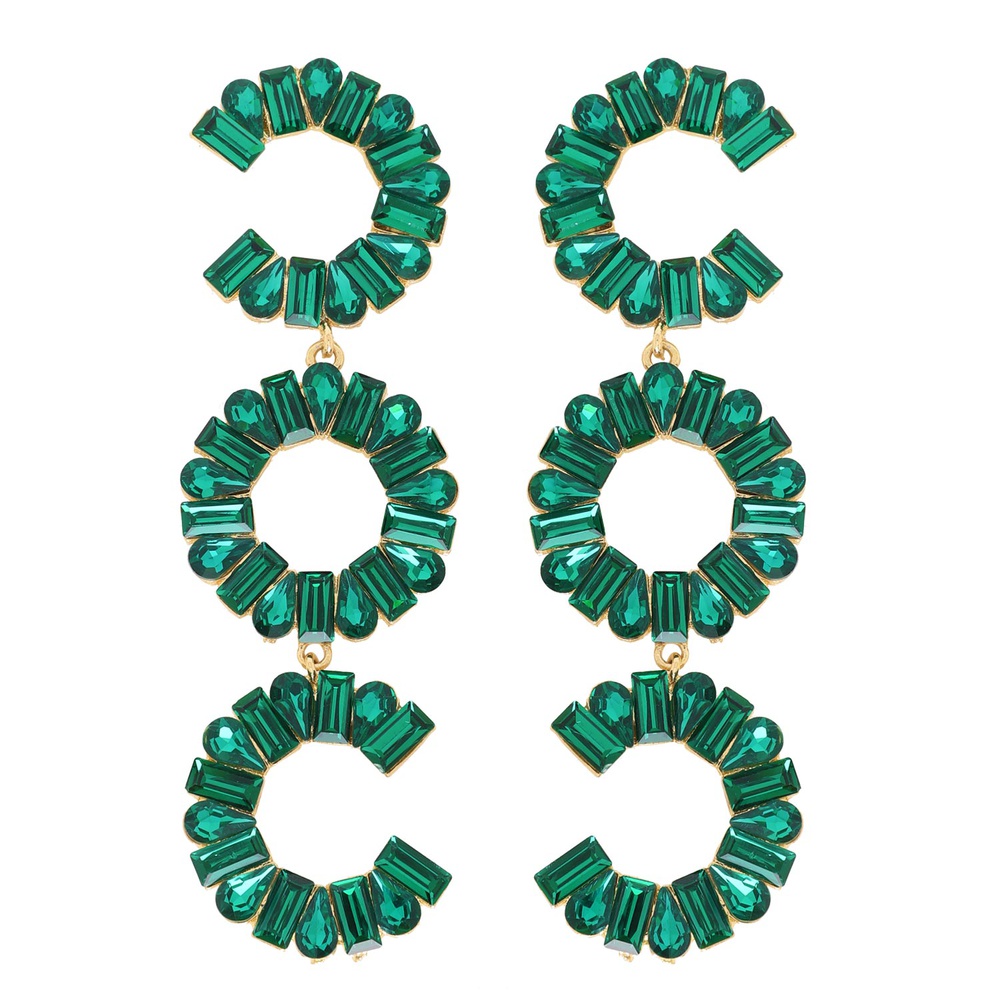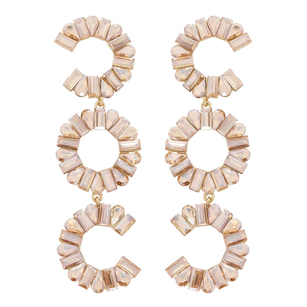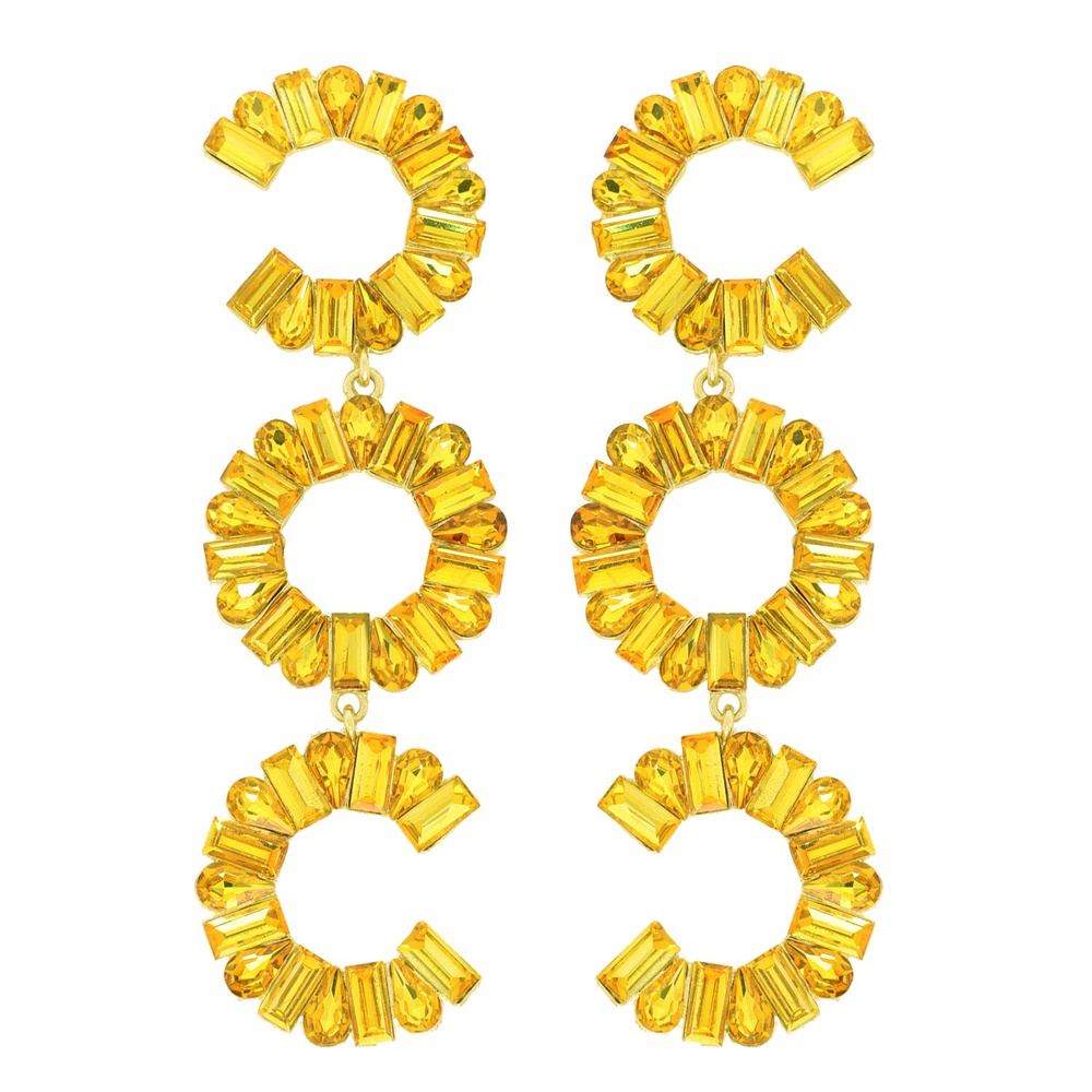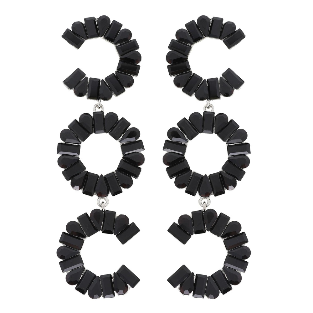 3-tier Crystal Gemstone Circular C-shape Earrings